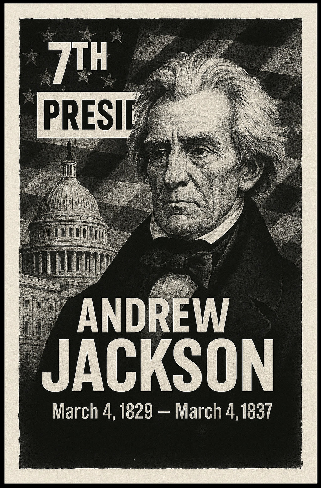 Printed with precision and made to inspire, this artwork is more than decoration—it’s a conversation piece that connects history, culture, and style. Bring Andrew Jackson 7th President of the United States Digital Montaje Poster into your home, classroom, or office today and let your walls tell a powerful story.