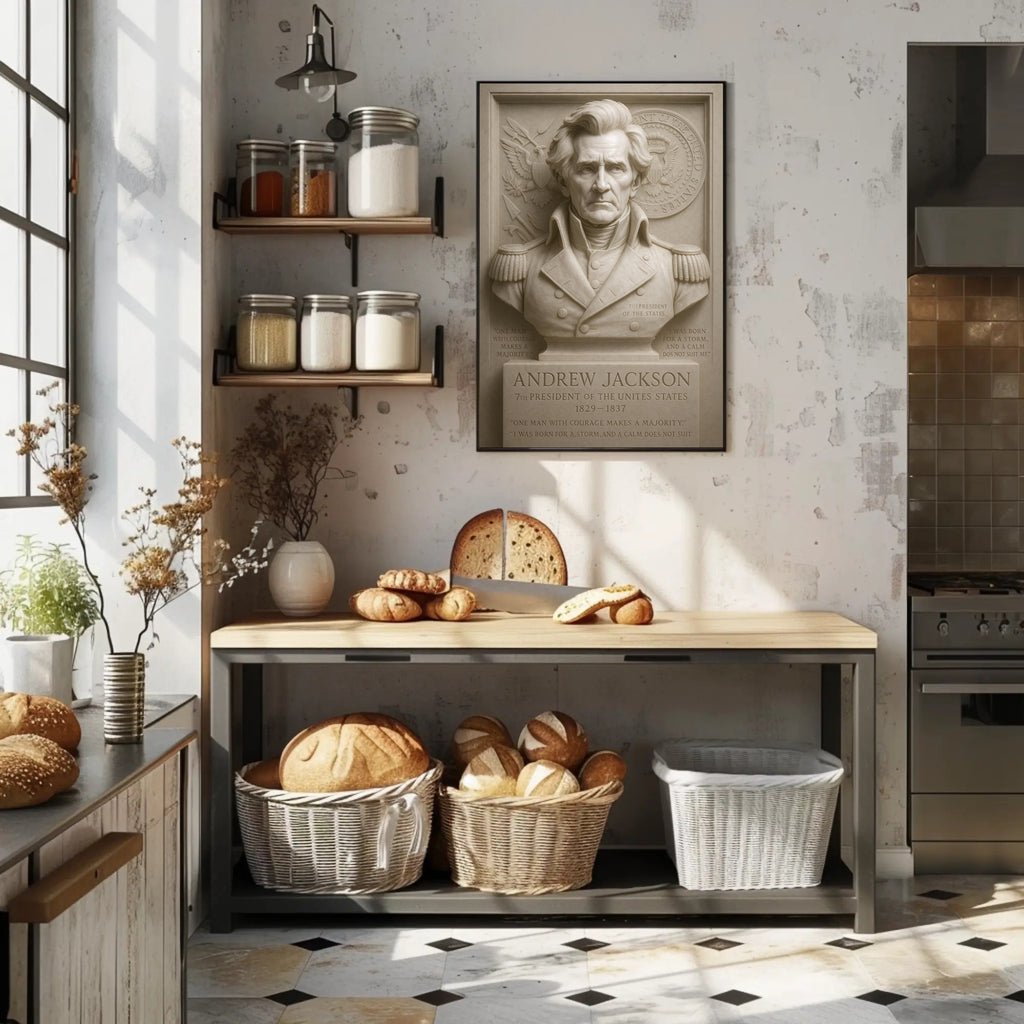 Bring home a piece of American history — add the Andrew Jackson Bust Vintage Presidential Poster by PosterGoat to your cart today.