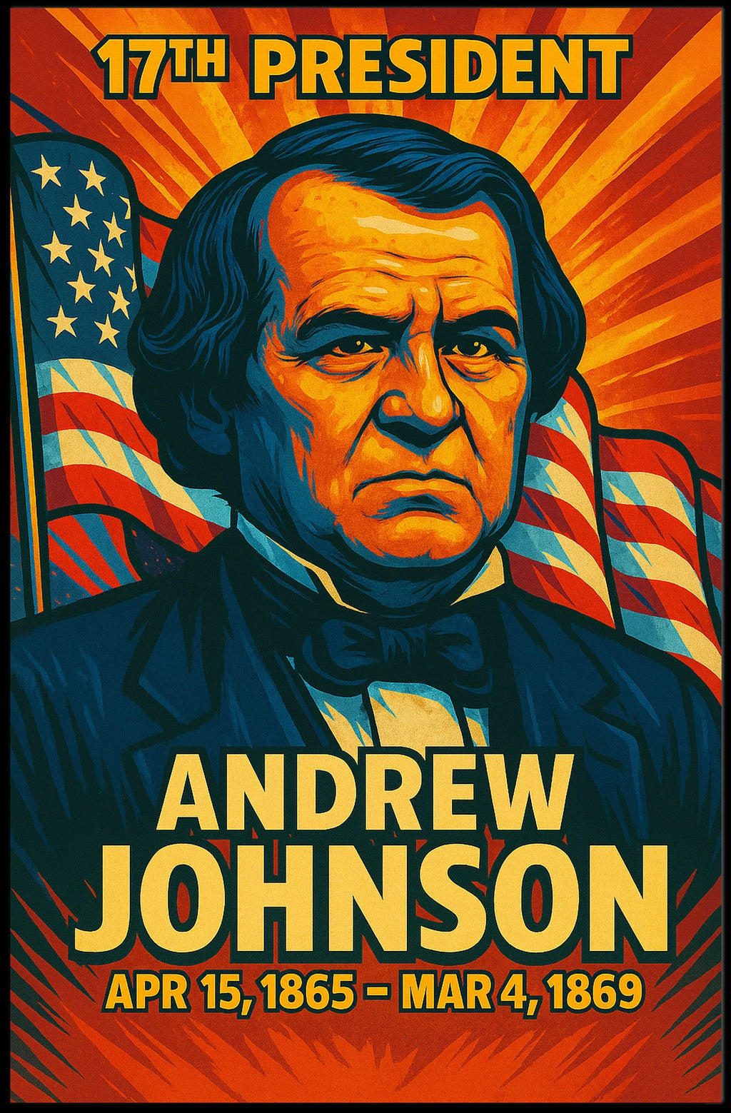 Printed with precision and made to inspire, this artwork is more than decoration—it’s a conversation piece that connects history, culture, and style. Bring Andrew Johnson 17th President of the United States Colorful Comic Book Style Poster into your home, classroom, or office today and let your walls tell a powerful story. This piece resonates with fans of american politics, history, portrait posters, usa, and vintage wall art.