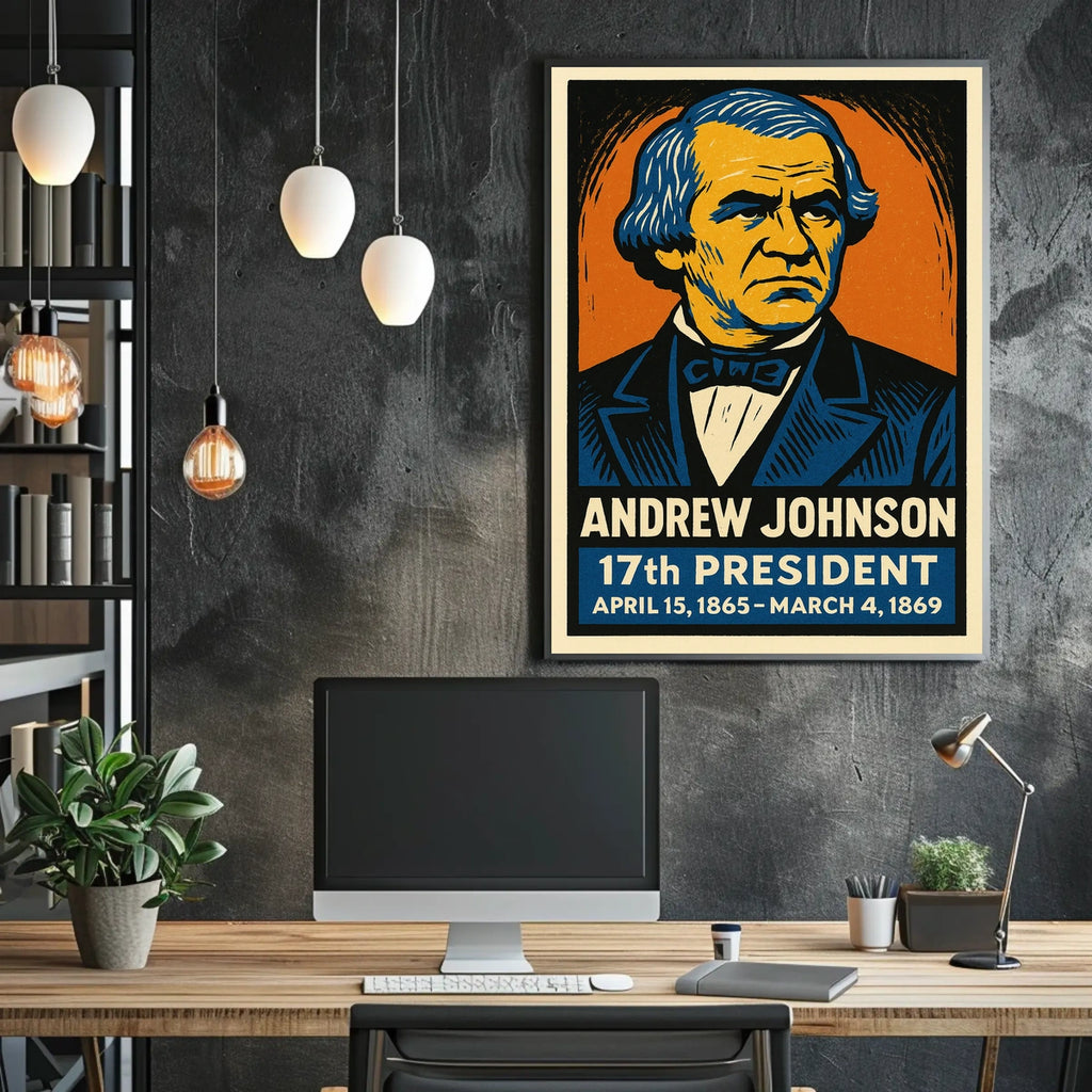 - Printed with precision and made to inspire, this artwork is more than decoration—it’s a conversation piece that connects history, culture, and style. Bring Andrew Johnson 17th President Poster into your home, classroom, or office today and let your walls tell a powerful story.