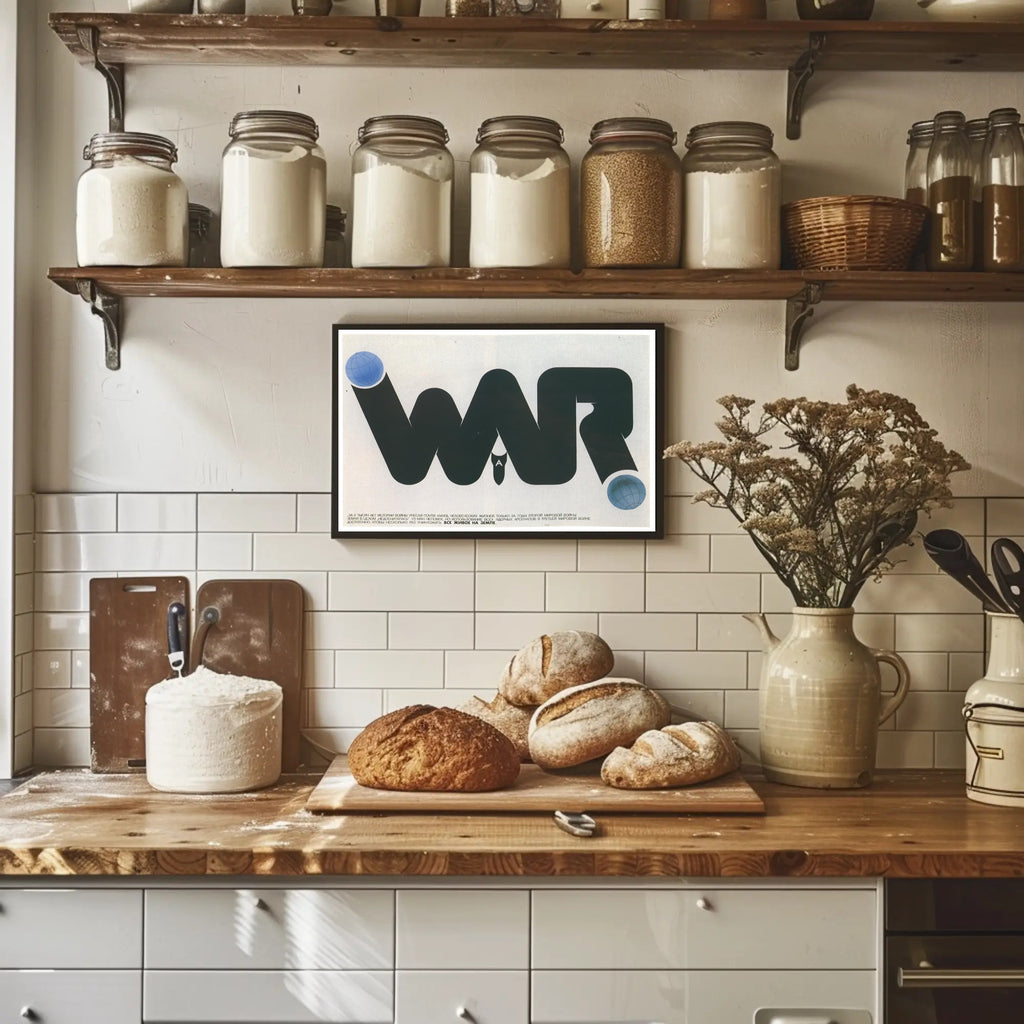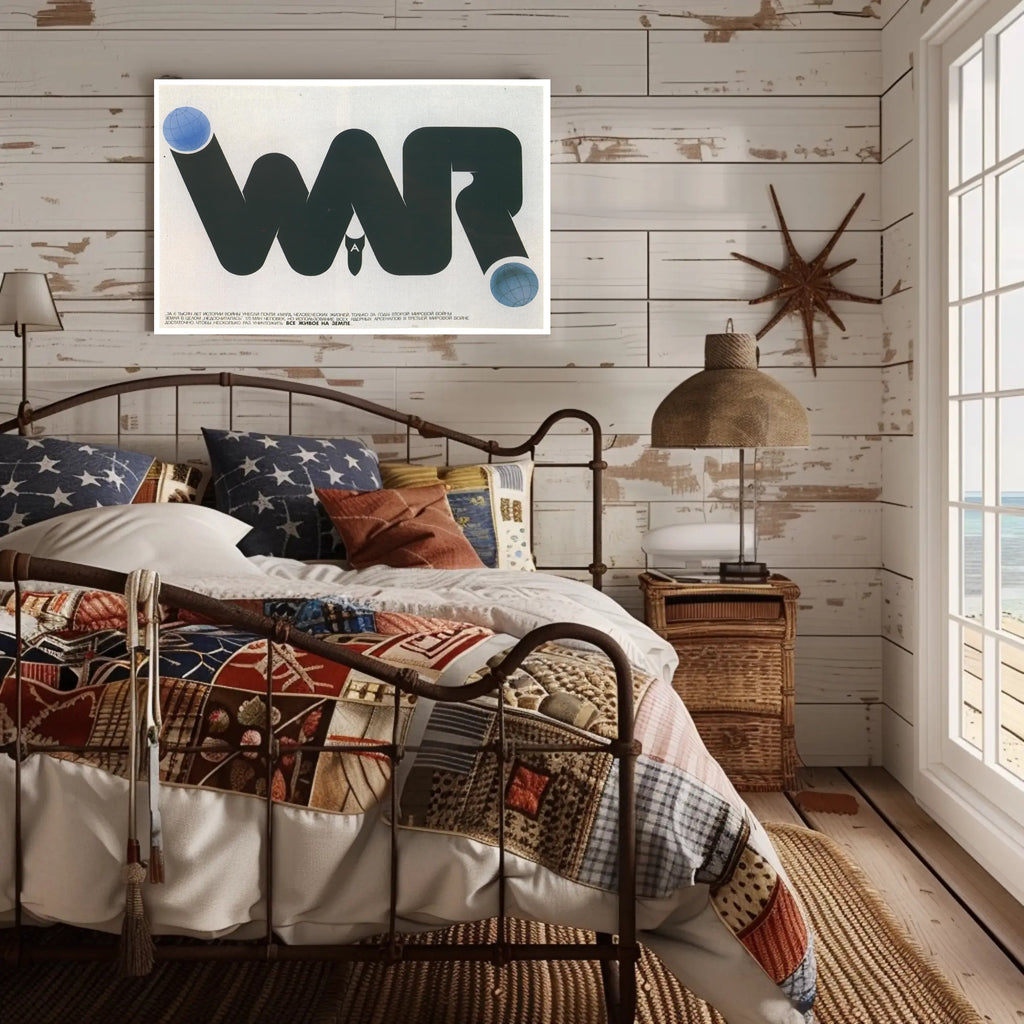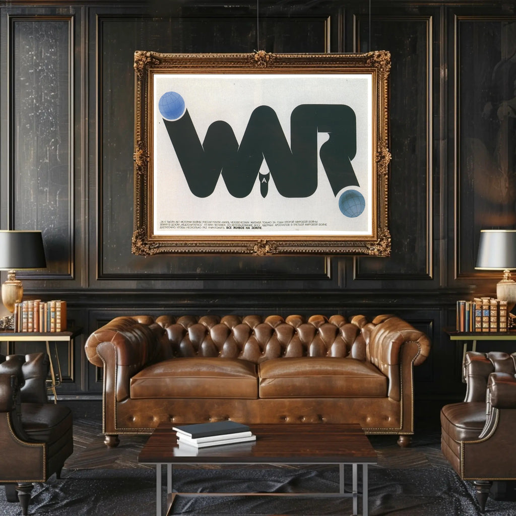 Anti War Awareness Poster from PosterGoat is a striking piece of artwork designed to provoke thought and elevate any room with bold, minimalist messaging. This poster transforms a simple typographic statement into powerful visual commentary — a sweeping black "WAR" shape punctuated by two blue globe motifs and a central bomb silhouette that calls attention to the human cost of conflict.