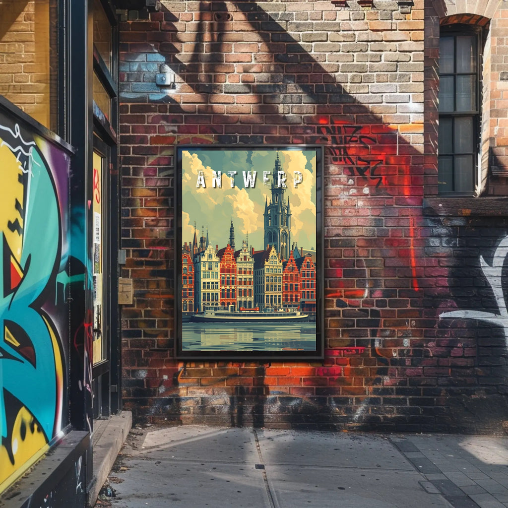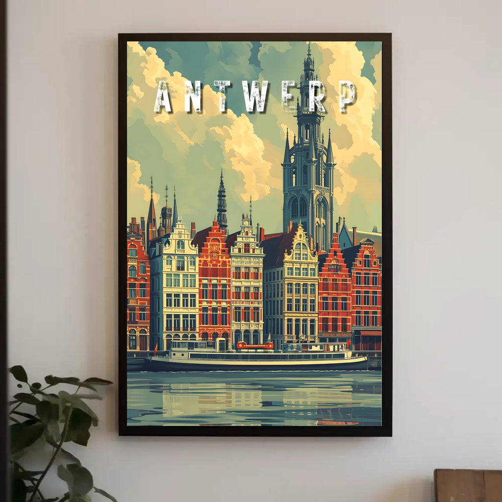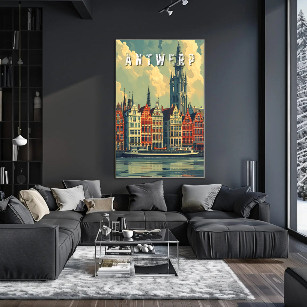 Why you'll love it: The poster’s detailed linework and rich color palette create depth and atmosphere, while the distressed "ANTWERP" title across the top adds an authentic vintage flair. Framed or unframed, it brings architectural beauty and wanderlust into living rooms, offices, or travel-themed spaces.