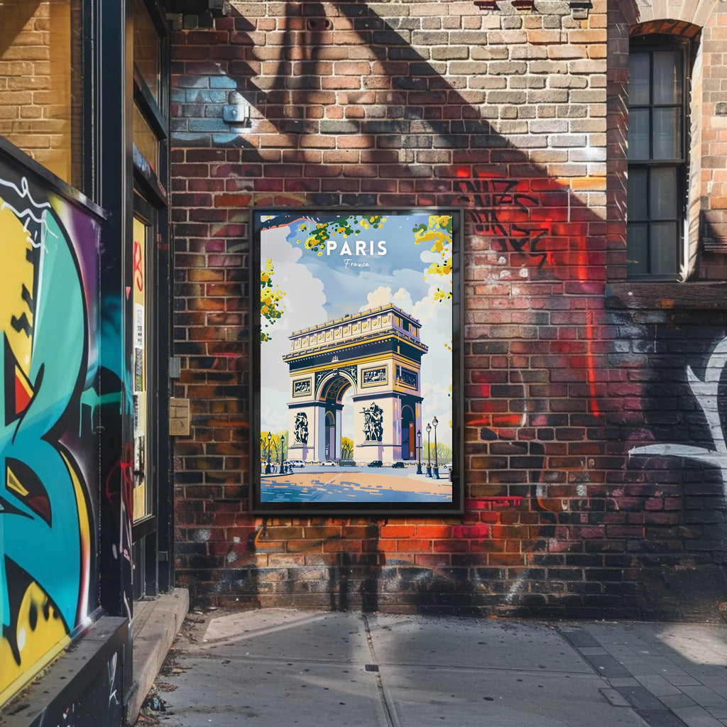 Perfect as a Paris poster, colorful Paris decor or an architectural print, this Arc de Triomphe illustration adds instant travel-inspired charm to any wall. Order your Arc de Triomphe Sunny Day Travel Poster from PosterGoat today and let your space tell a story of sunny afternoons and iconic cityscapes.