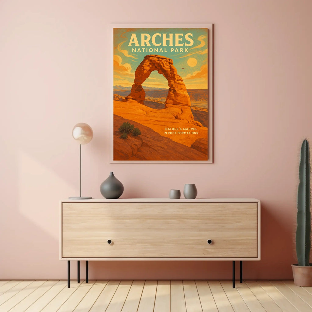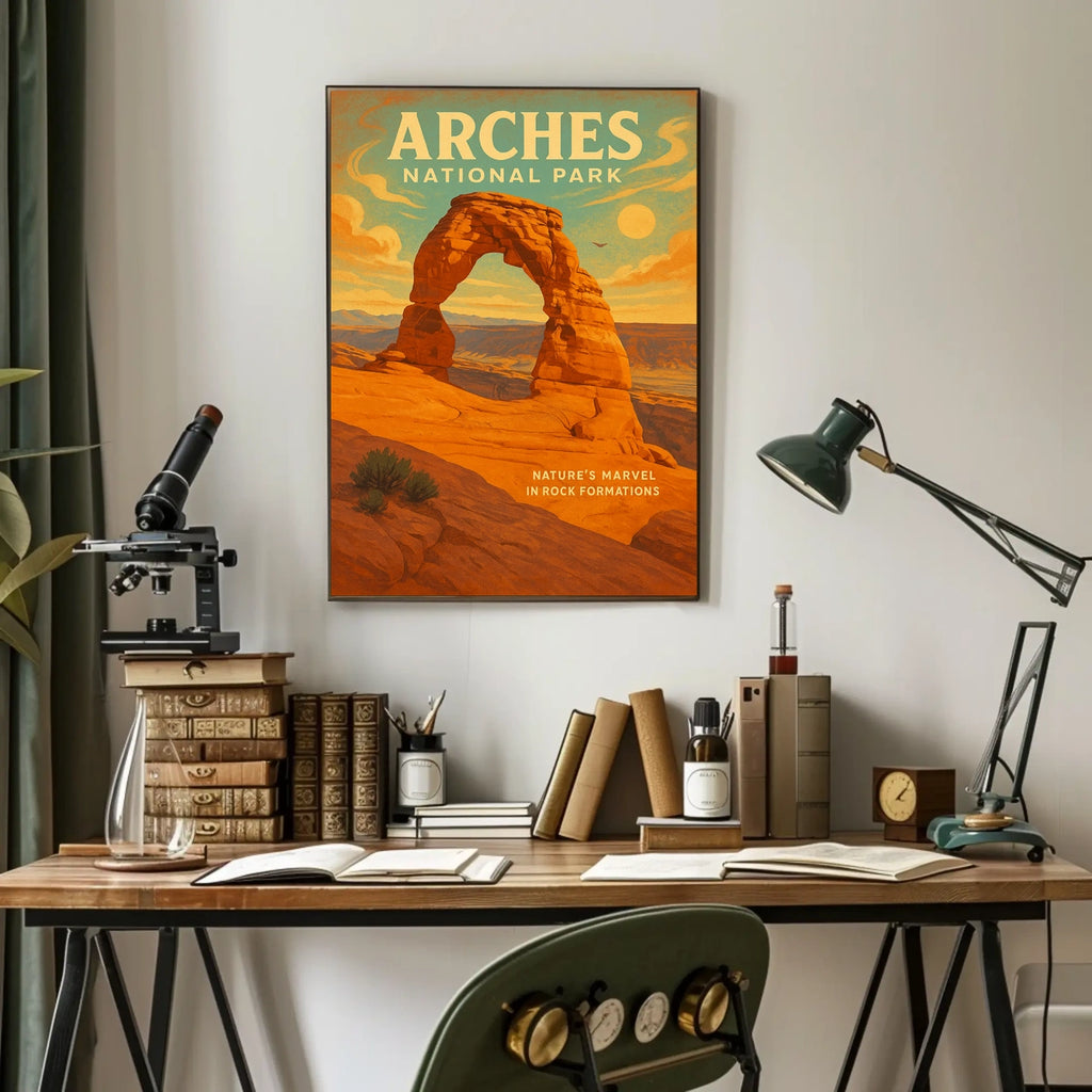 Intro: Capture the timeless beauty of Arches National Park with this NatureS Marvel Poster. Designed for decor lovers and wanderlust spirits, it brings the park’s iconic red rock arches and golden desert light into any room, turning walls into an invitation to explore.