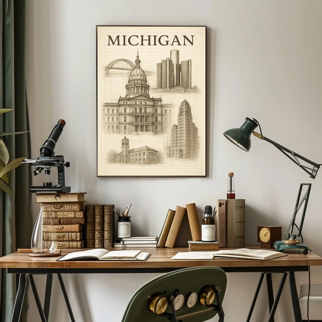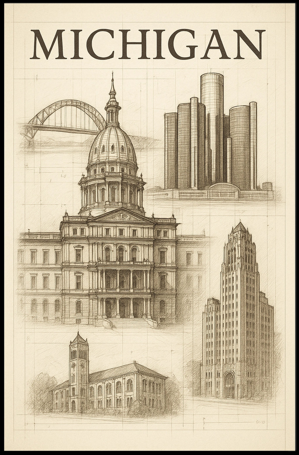 Bring the Architectural Landmarks Of Michigan Poster into your space today and let your walls tell a powerful story.