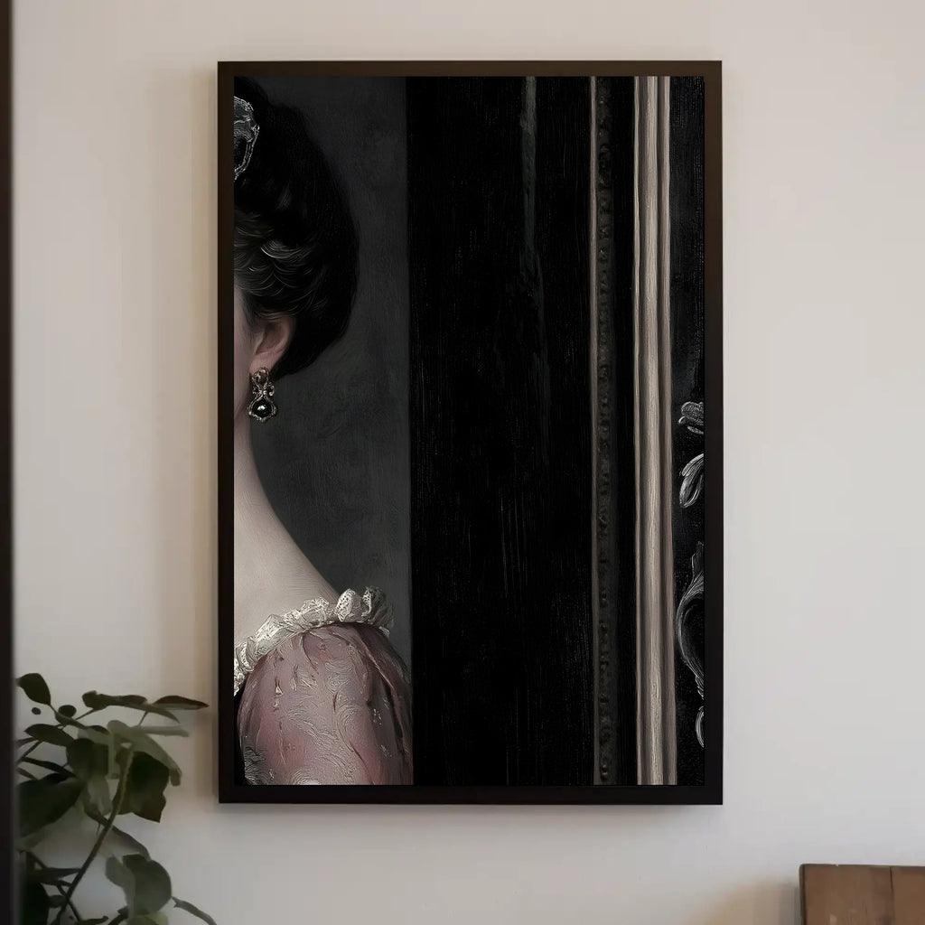 Discover timeless elegance with the "Aristocratic Woman in Vintage Lace Dress Heritage Poster" from PosterGoat — a refined addition to any Home & Garden decor collection. This striking poster captures a poised profile from a bygone era, showcasing exquisite lace detailing, a delicate ruffled neckline, and a statement earring that speaks to 17th–19th century aristocratic fashion. Rendered with realistic textural brushwork and deep tonal contrast, the artwork blends classical portraiture with minimalist presentation for a sophisticated focal piece.