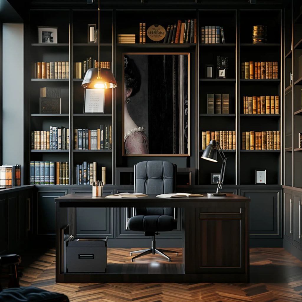 Minimalist Presentation: A contemporary layout that emphasizes negative space and dramatic contrast, perfect for modern interiors seeking classical elegance decor.