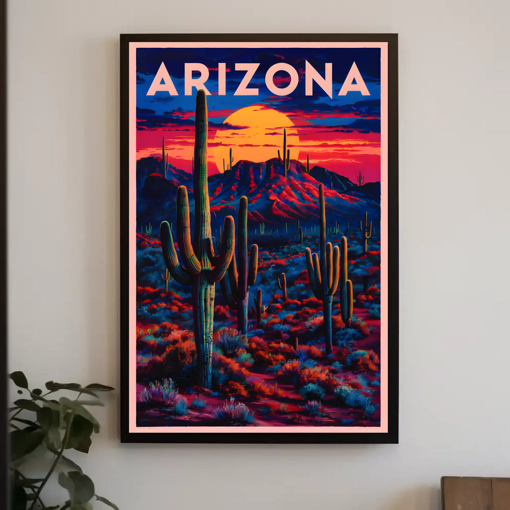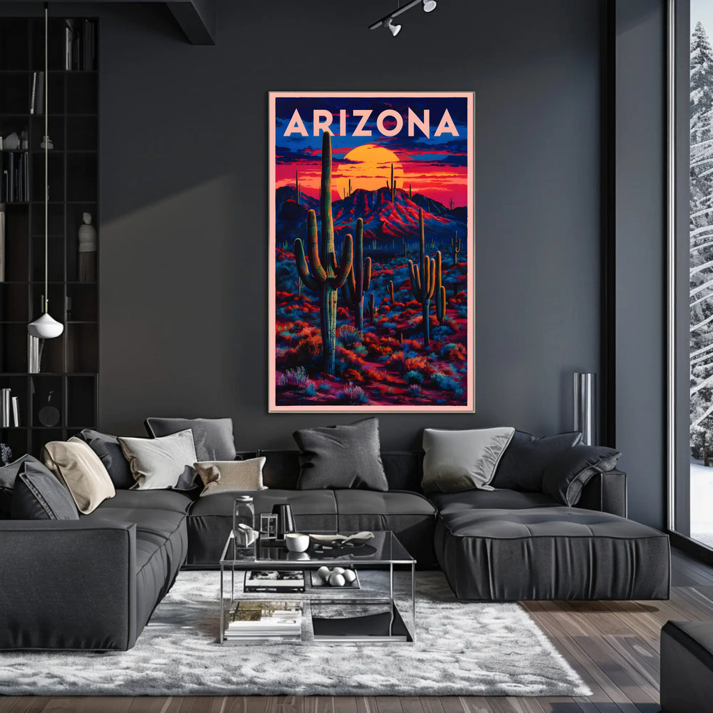 This travel poster captures the essence of Arizona Sunset Landscape. Designed for decor lovers and wanderlust spirits, this art print adds charm to any room with visuals inspired by real-world scenery.