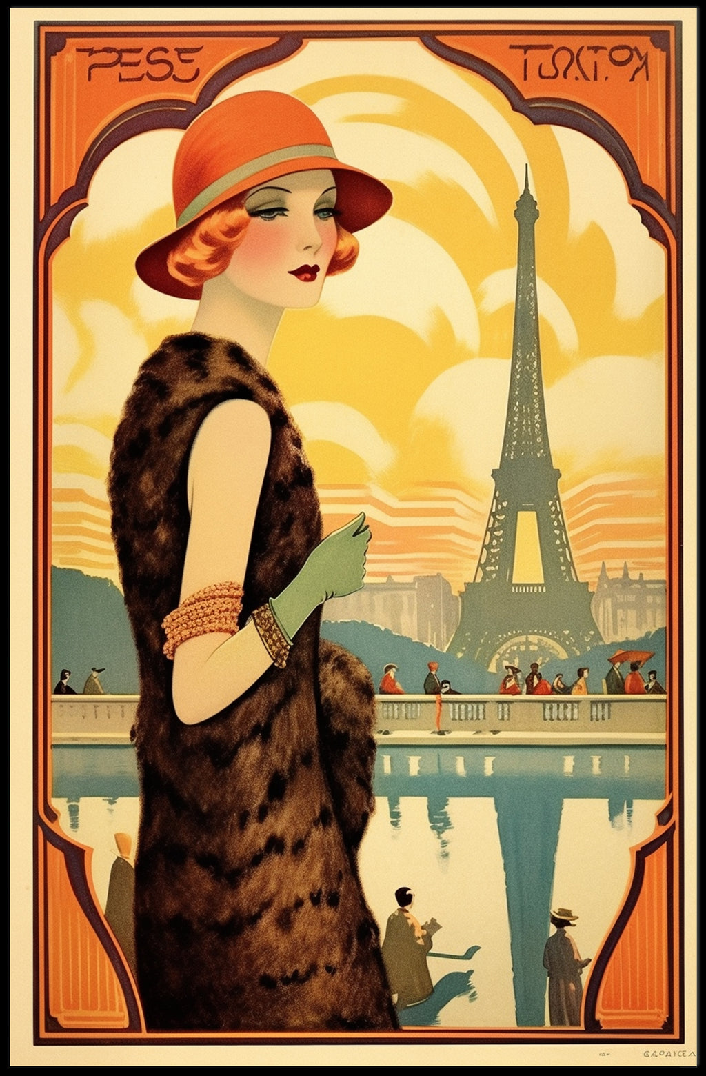 Style & Mood: Retro, glamorous, and sophisticated—perfect for fans of 1920s fashion, vintage Paris, and glamorous poster art.