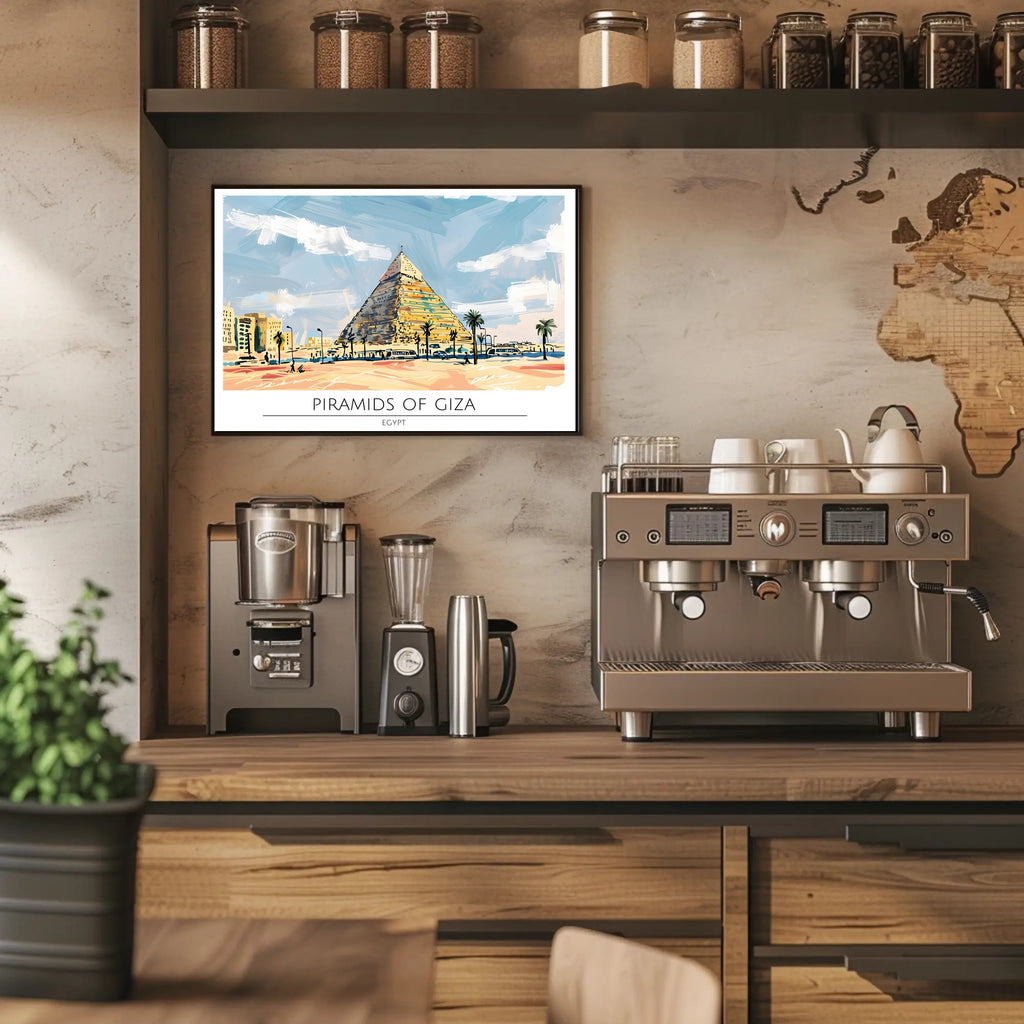 Ready to transform your wall? Add the Artistic Depiction of the Pyramids of Giza Poster to your cart now and let PosterGoat deliver a timeless, travel-ready print to your home.