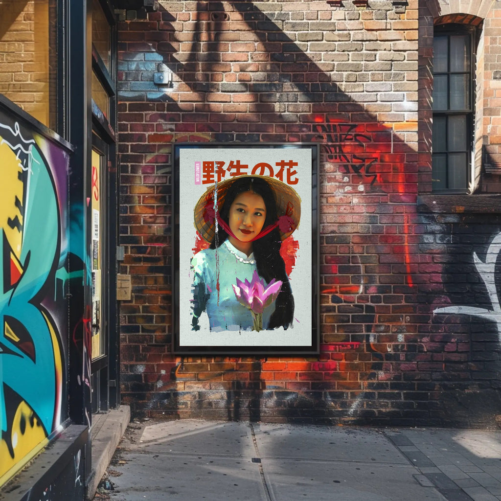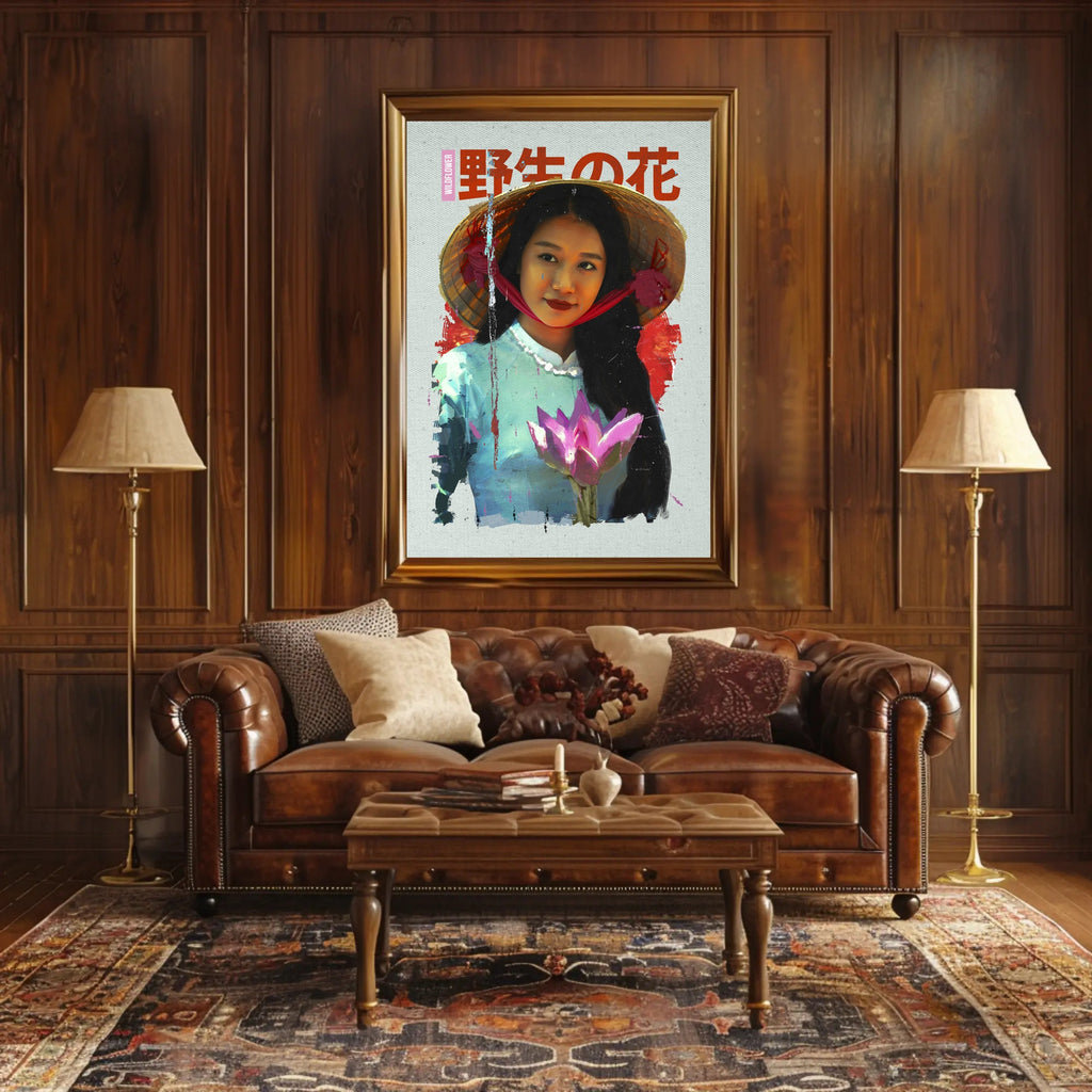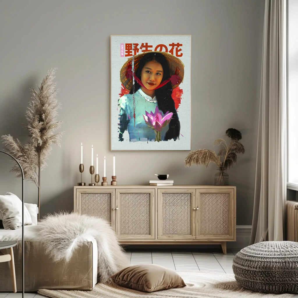 Asian Serenity: Lotus and Traditional Attire Cultural Poster