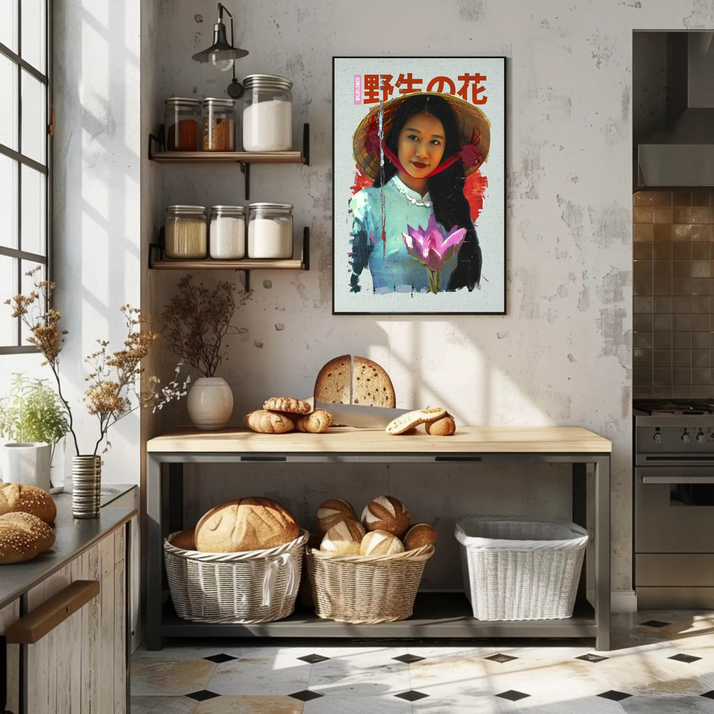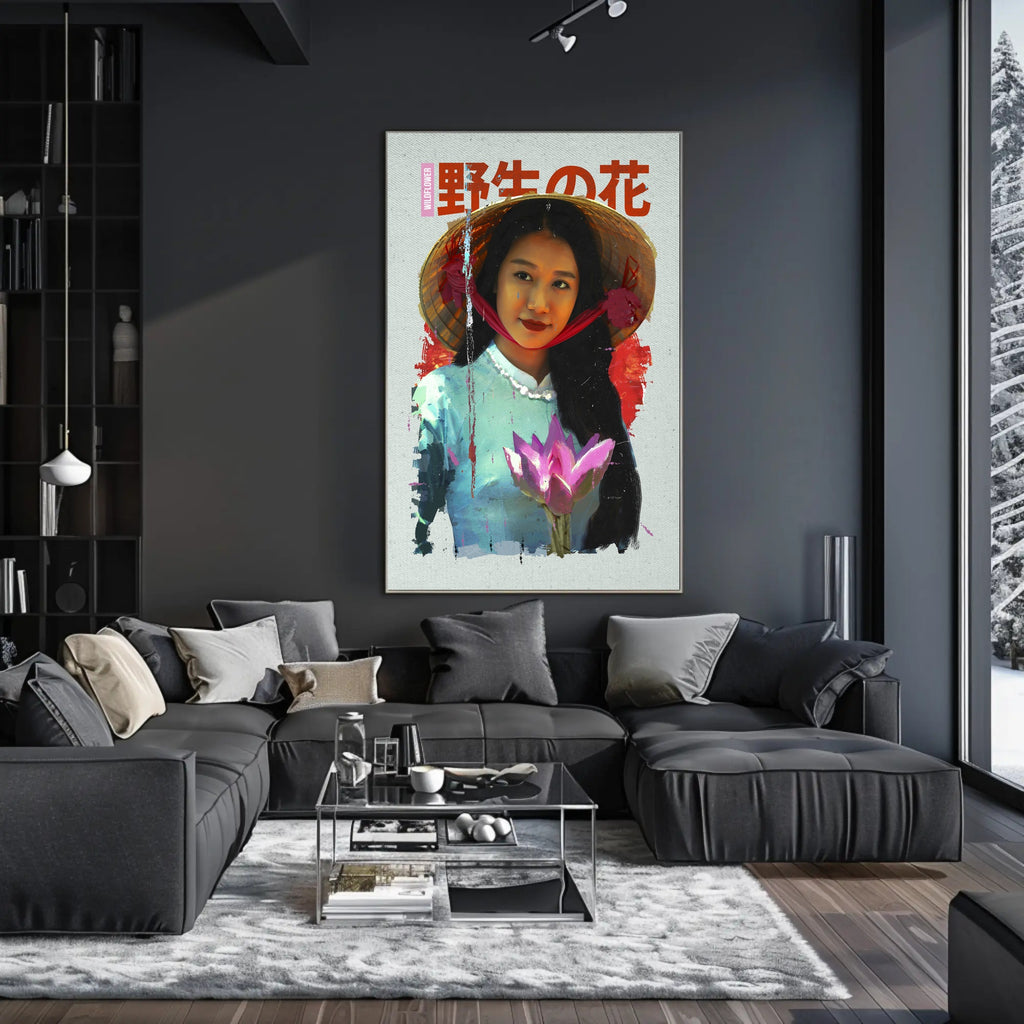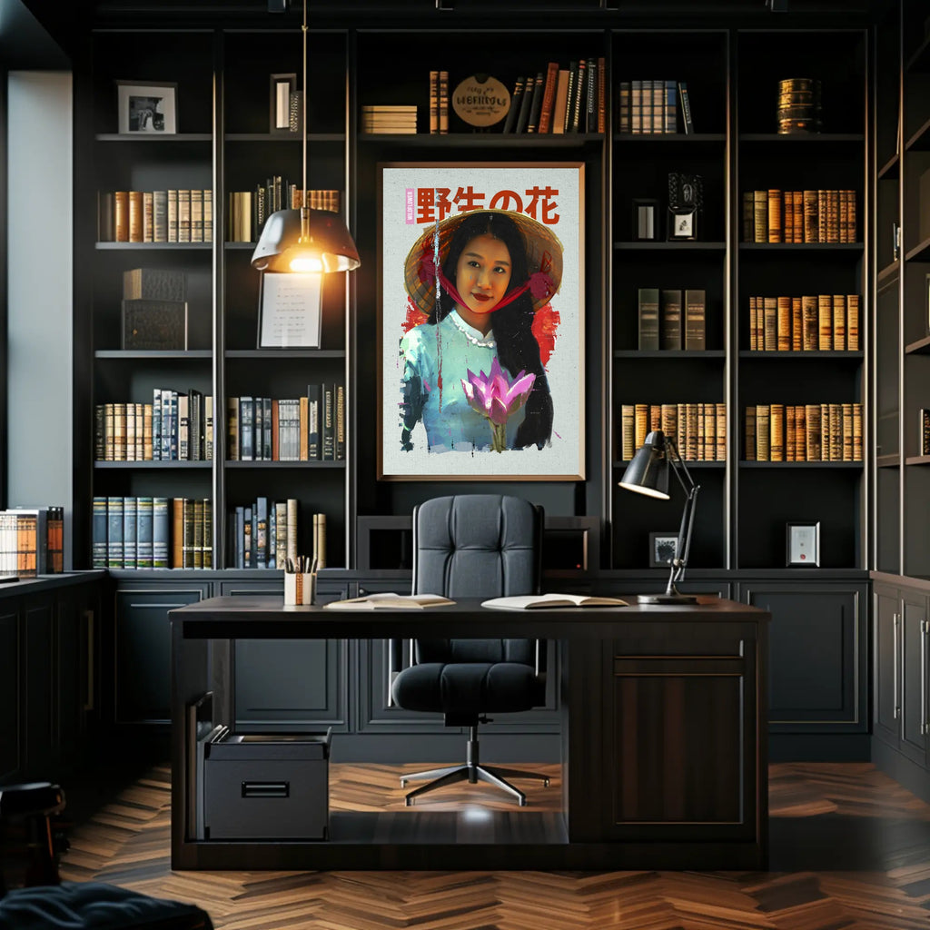 Asian Serenity: Lotus and Traditional Attire Cultural Poster