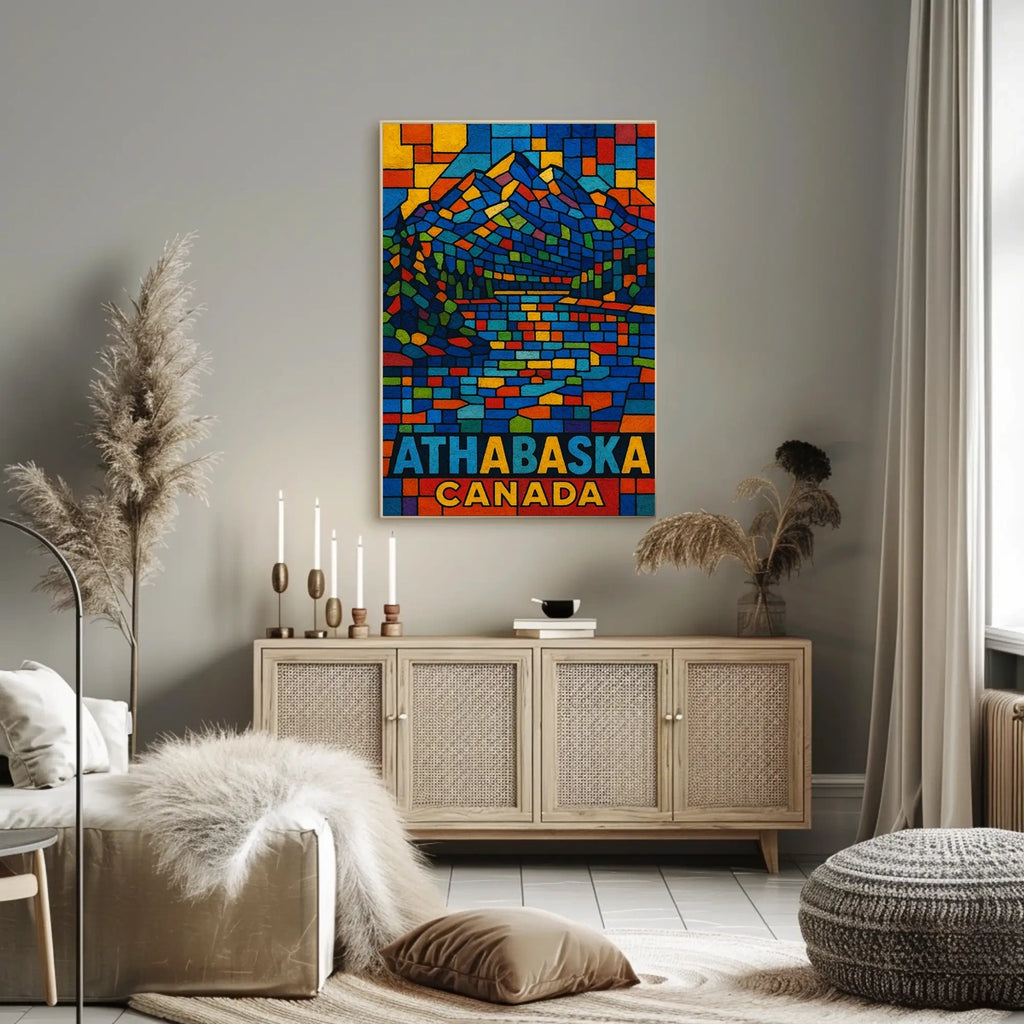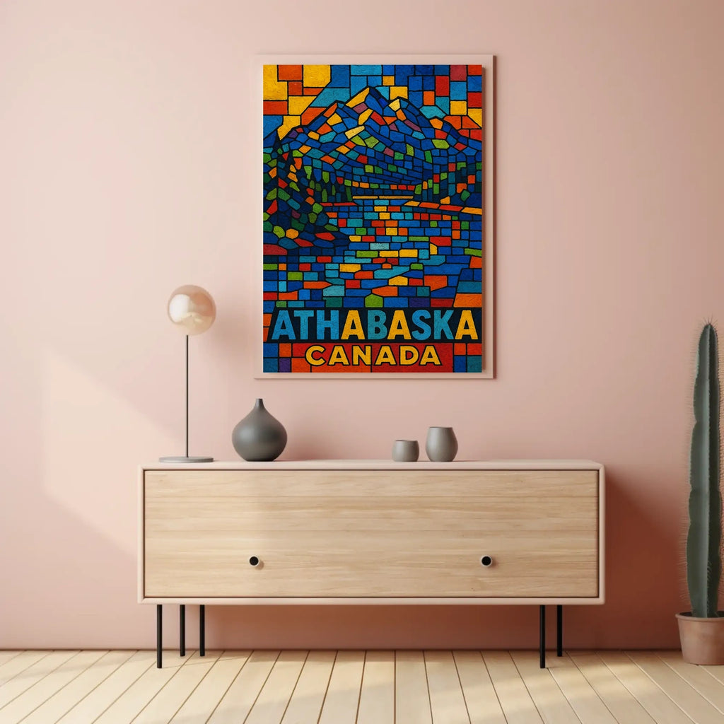 Athabasca Canada A Vibrant Mosaic Poster celebrates the beauty of Athabasca with a vibrant mosaic composition inspired by real-world scenery. Designed for decor lovers and wanderlust spirits, this art print adds charm to any room, turning walls into a canvas of exploration and inspiration.