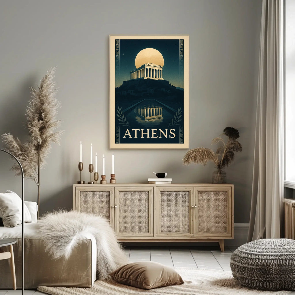 Bring the magic of Athens home today with this moonlit Parthenon poster. A timeless gift and statement piece that invites admiration—add to cart now and elevate your wall art collection.