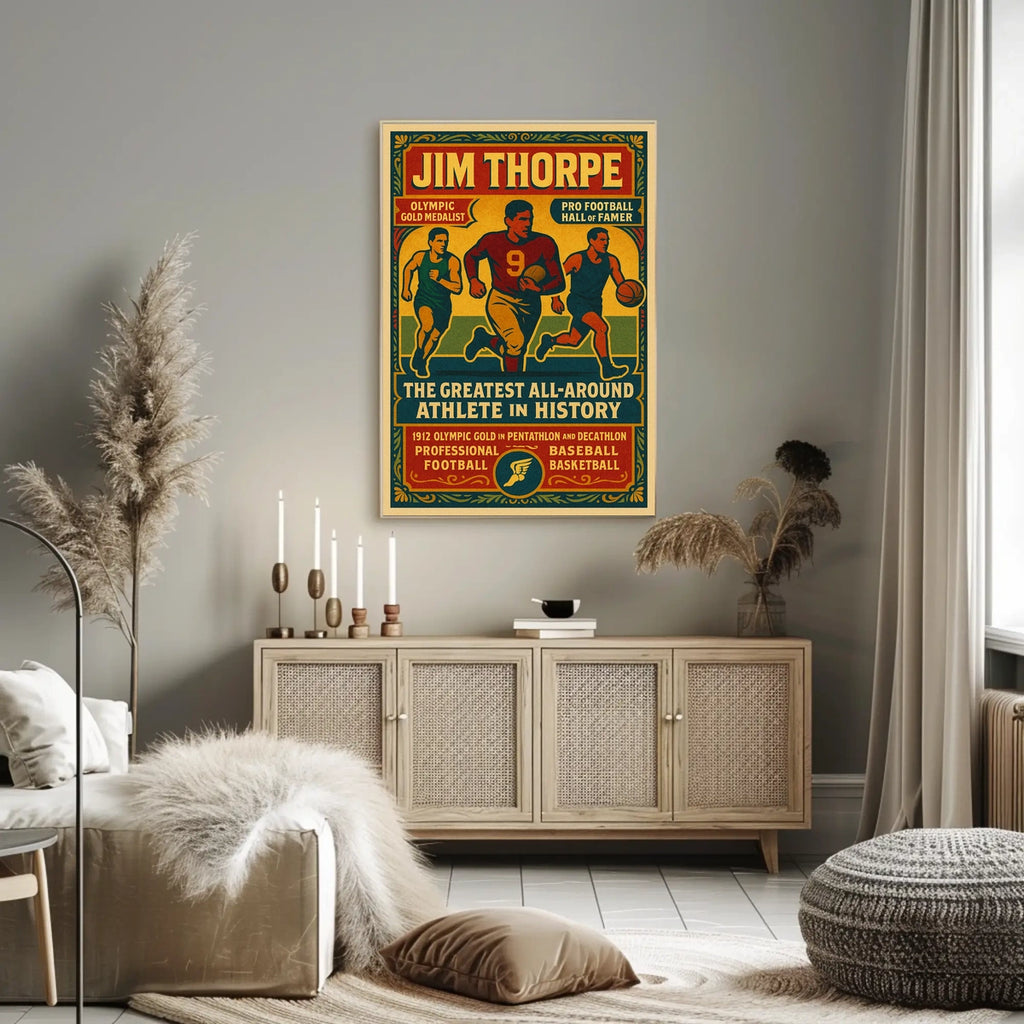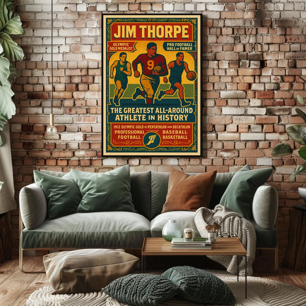 Intro: Pay homage to a storied athlete with this vibrant poster that celebrates Olympic gold and Pro Football Hall of Fame greatness. Rich color, dynamic composition, and a narrative of unrivaled versatility make this print a bold centerpiece for fans of sport, history, and timeless achievement.