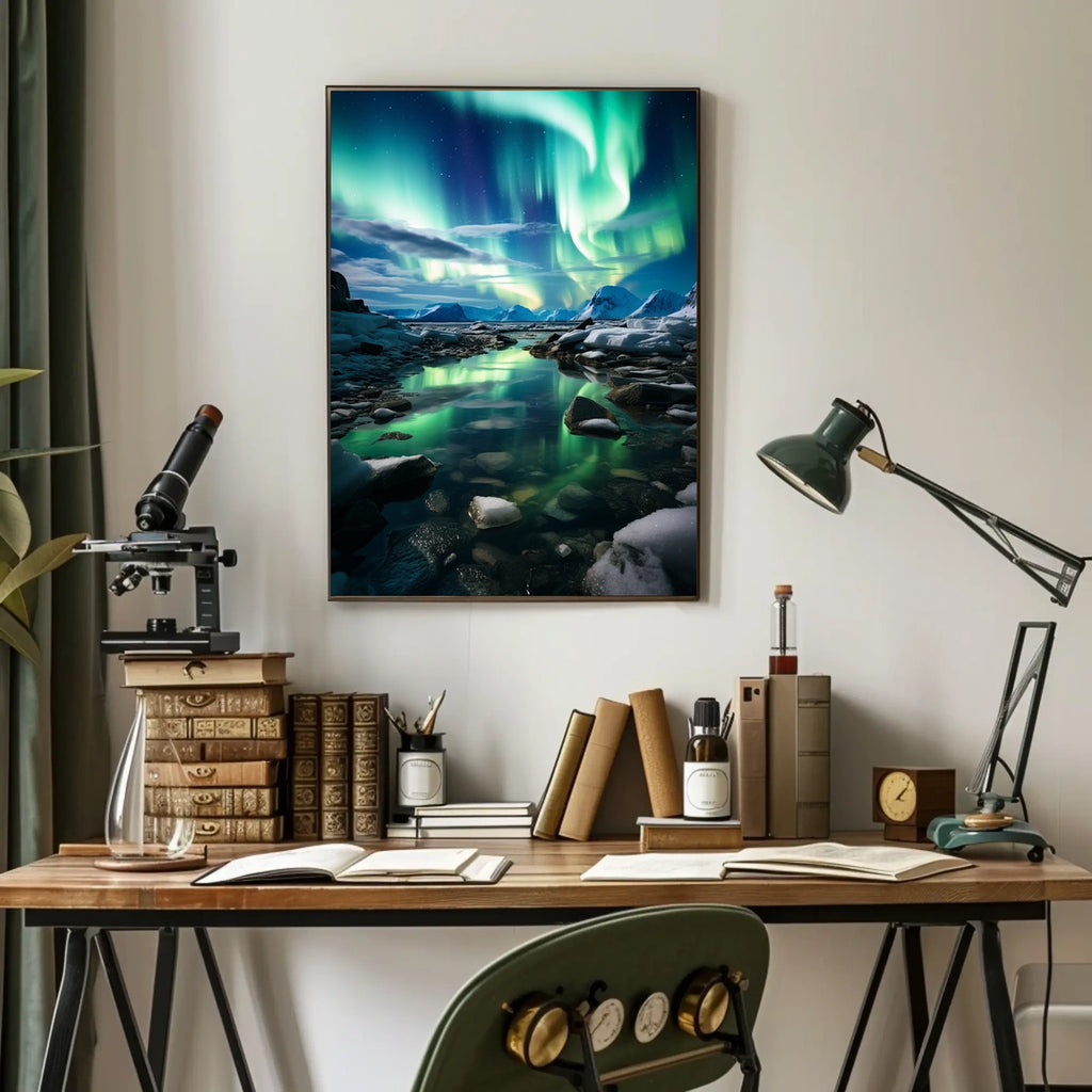 Printed with precision and made to inspire, this artwork is more than decoration—it’s a conversation piece that brings the beauty of the northern lights into your home, classroom, or office