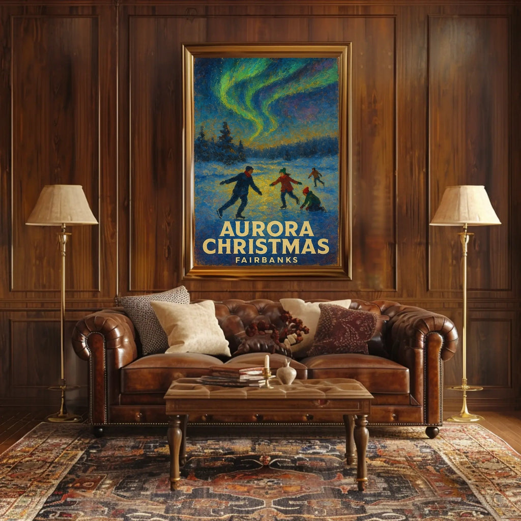 Aurora Christmas in Fairbanks Poster — celebrate the magic of the northern lights over a tranquil winter landscape with this timeless wall art. Designed for decor lovers and wanderlust spirits, this art print adds charm to any room with visuals inspired by real-world scenery.