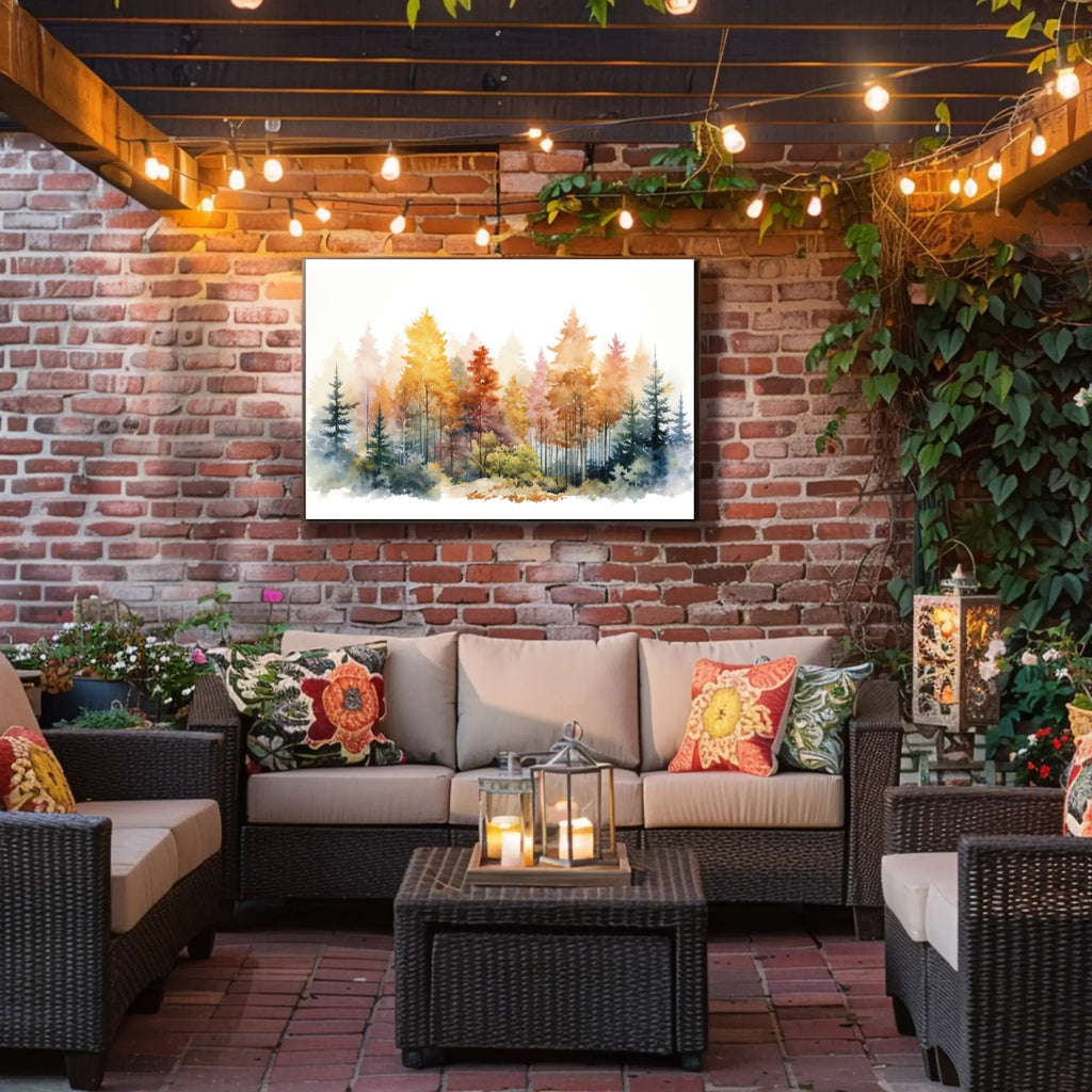 This Autumn Forest Serenity Poster is more than wall art — it’s a mood maker. The watercolor-like blending and airy negative space create a sense of open sky above a dense, colorful canopy, inviting relaxation and focus in any room.