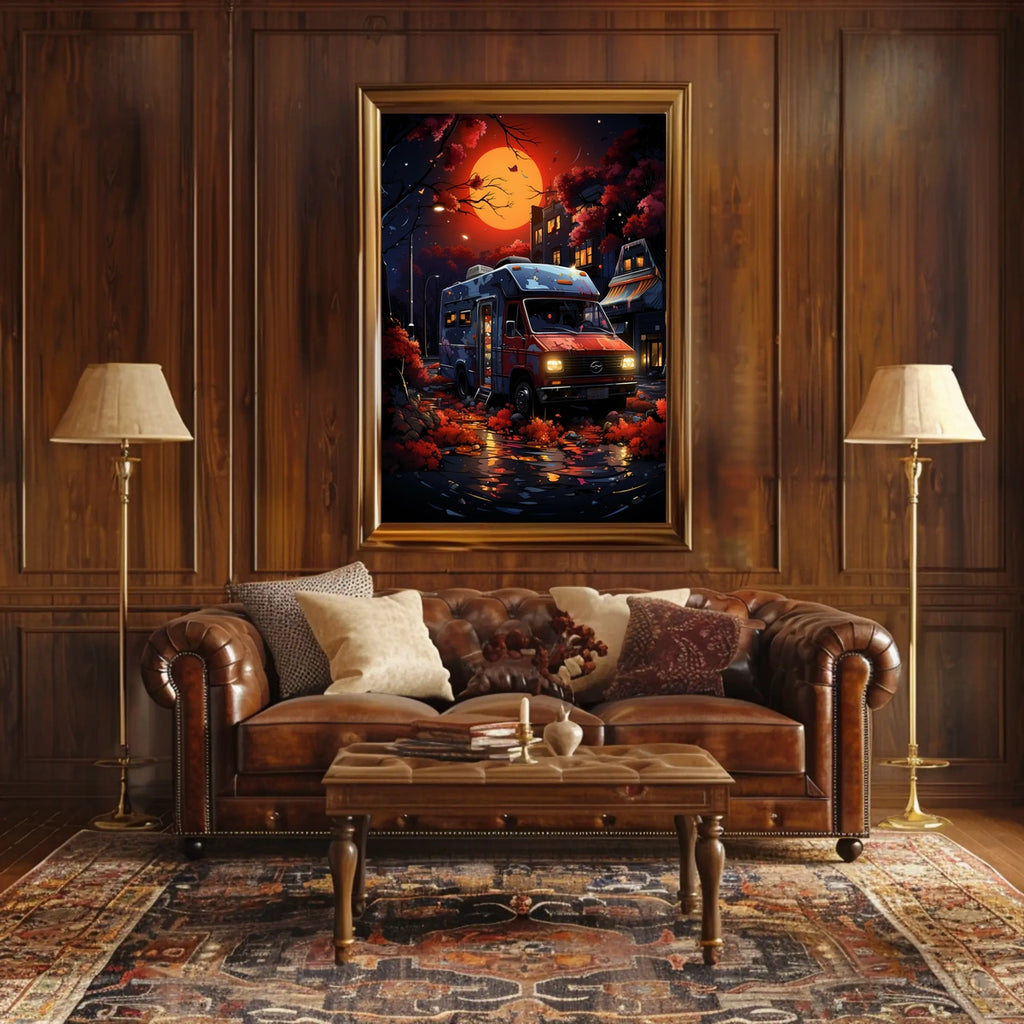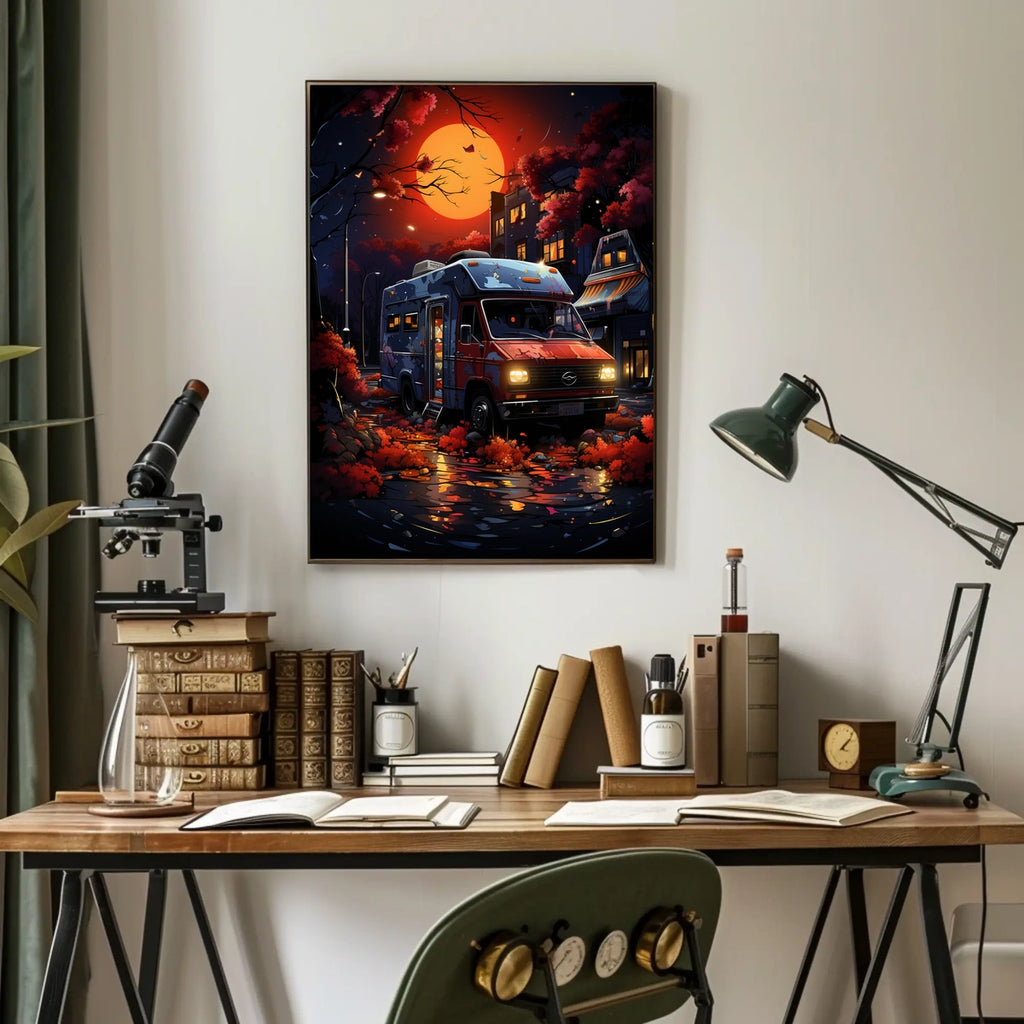 This poster brings the calm of autumn nights to any space, enriching your decor with character and a sense of adventure. Add to cart today to start your own Autumn Night Escape.