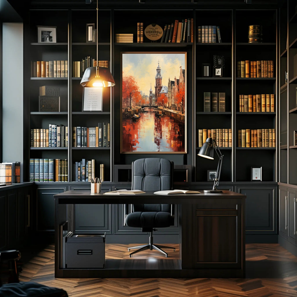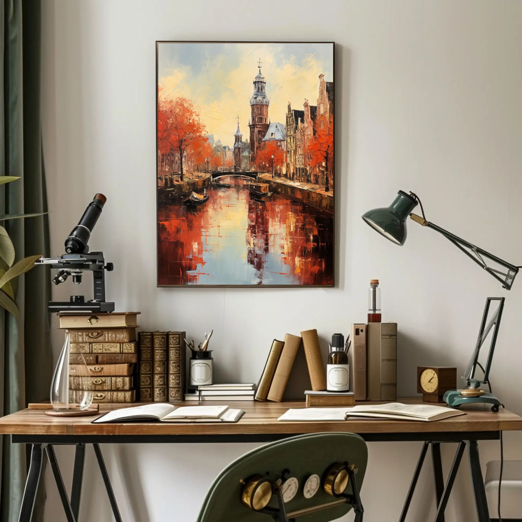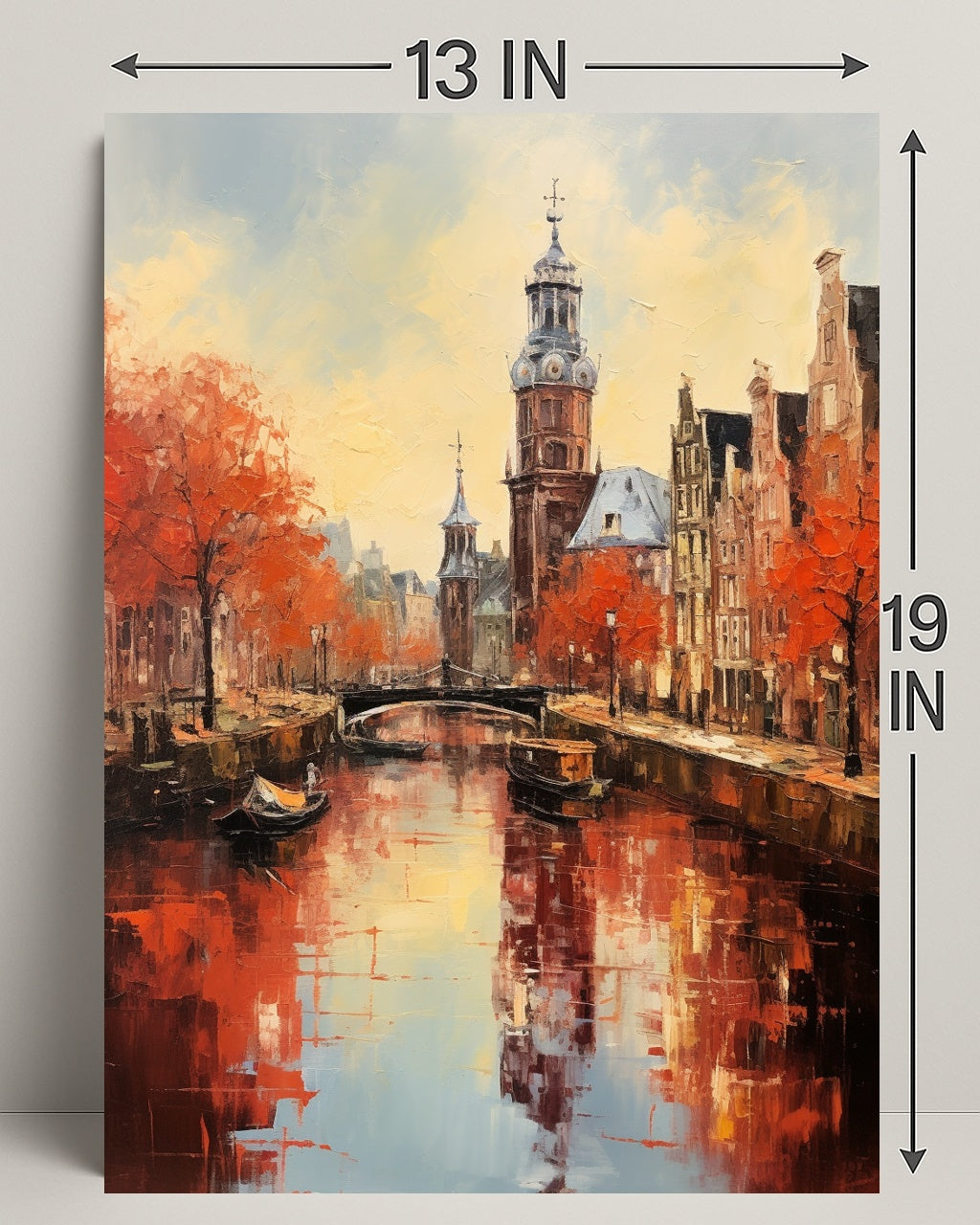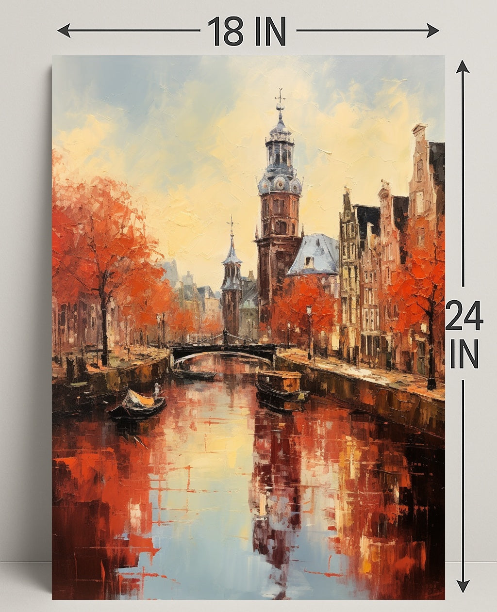 Vibrant Colors: The rich hues of autumn leaves and the tranquil canal create a striking visual impact.