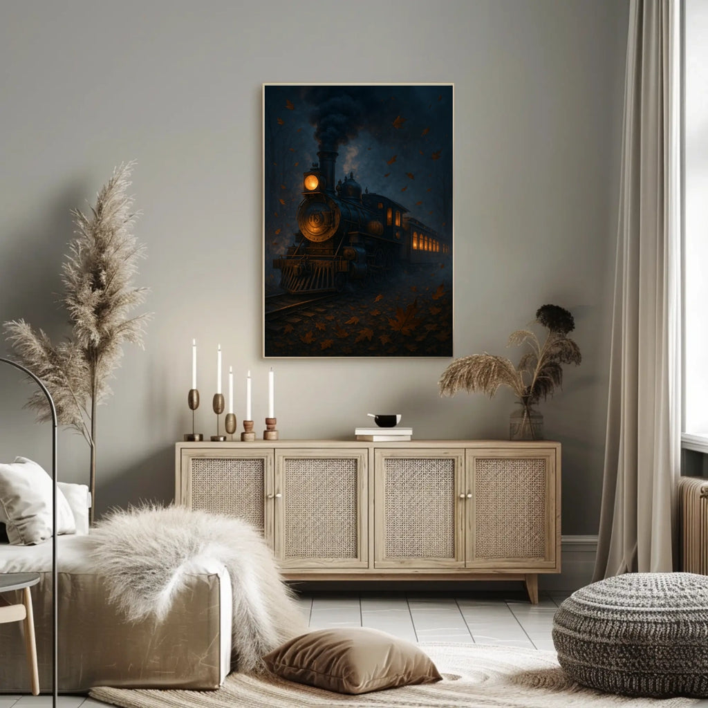 Perfect as wall art in living rooms, bedrooms, studios, or offices, this poster adds autumn charm to any decor style. It also makes a thoughtful gift for art lovers, travelers, and anyone who appreciates scenic trains and nostalgic journeys.