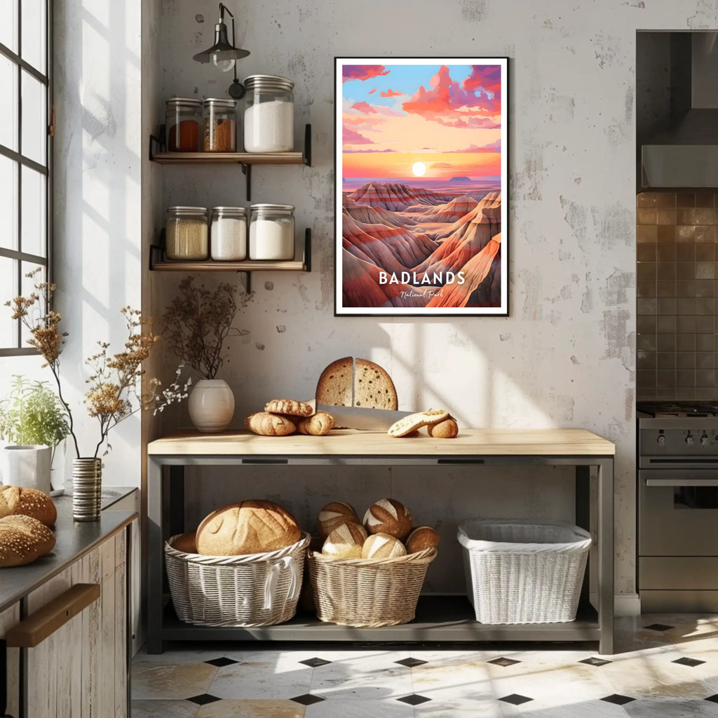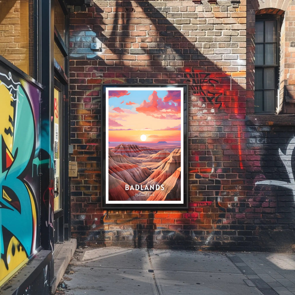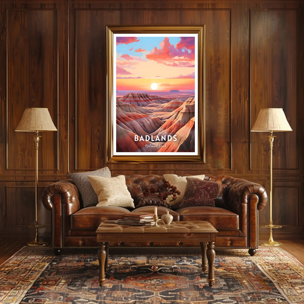 Badlands National Park Sunset Poster — Dramatic Landscape Wall Art