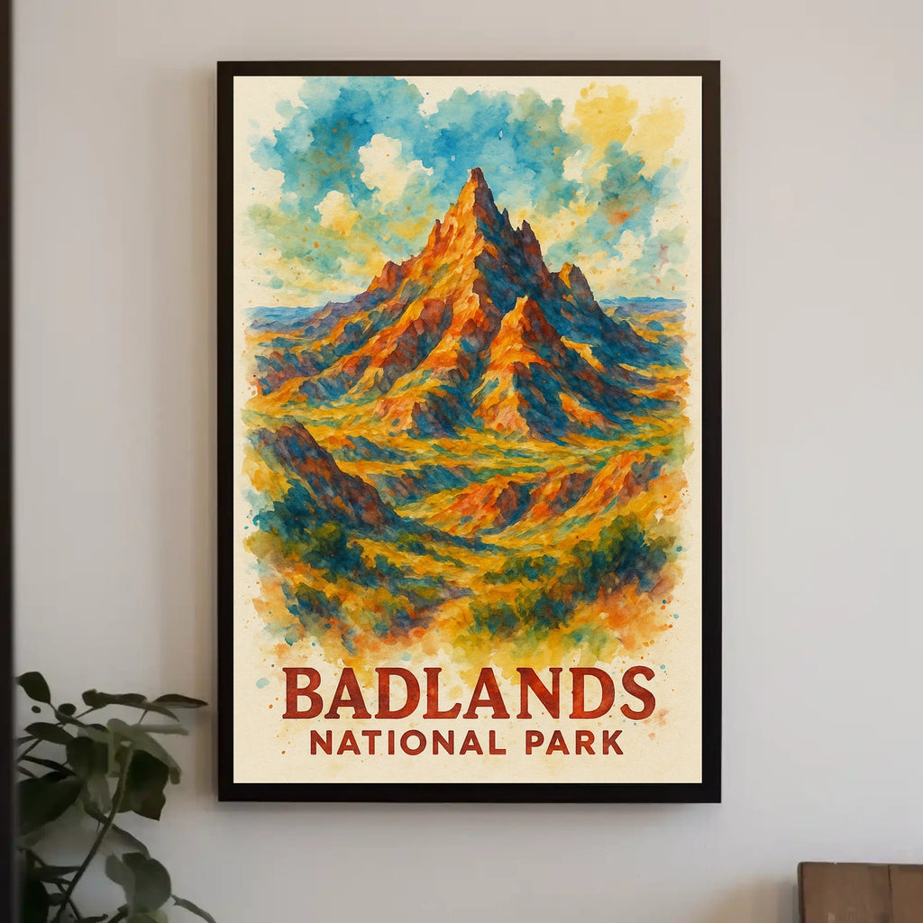 - Printed with precision and made to inspire, this artwork is more than decoration—it’s a conversation piece that connects travel, nature, and style. Bring Badlands National Park into your home, classroom, or office today and let your walls tell a powerful story.
