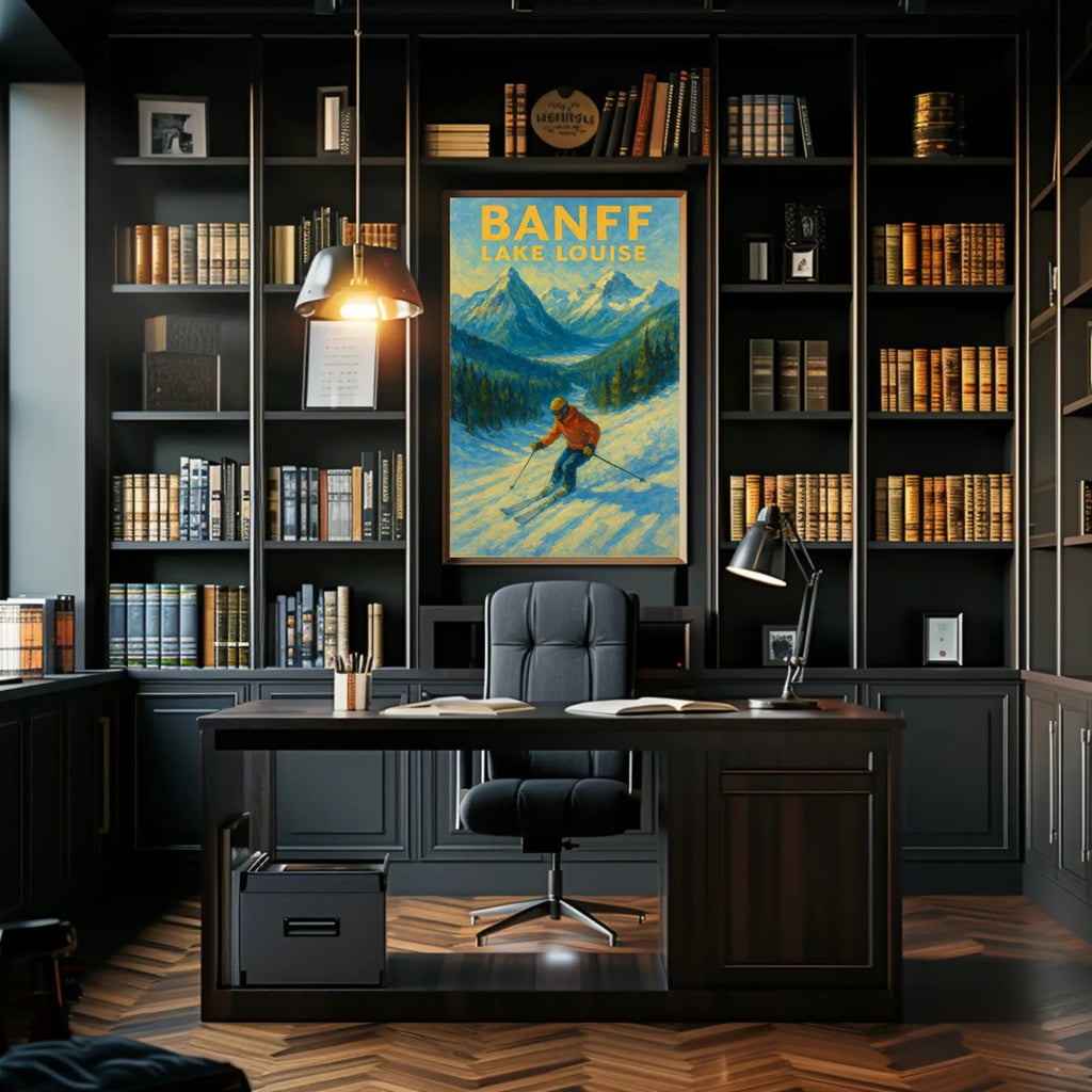 Printed with precision and made to inspire, this artwork is more than decoration—it’s a conversation piece that connects travel, nature, and style. Bring the Banff Lake Louise Ski Adventure Poster into your home, classroom, or office today and let your walls tell a powerful story. Perfect as wall art for fans of Banff, Lake Louise, and scenic mountain adventures.