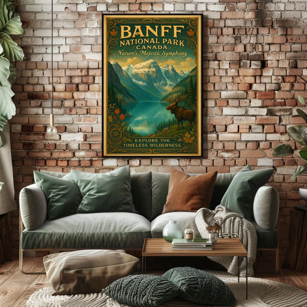 Immerse your space in the grandeur of Banff National Park with this Nature's Majestic Symphony poster. Created for décor lovers and wanderlust spirits, it translates real-world scenery into a captivating wall art print that enhances any room. The design blends dramatic mountain silhouettes with serene lakes, inviting daily inspiration and a touch of travel-ready charm.