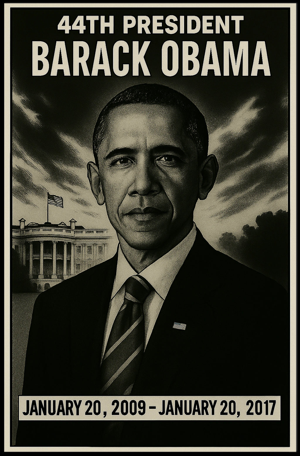 - Detailed design capturing the essence of Barack Obama as the 44th President