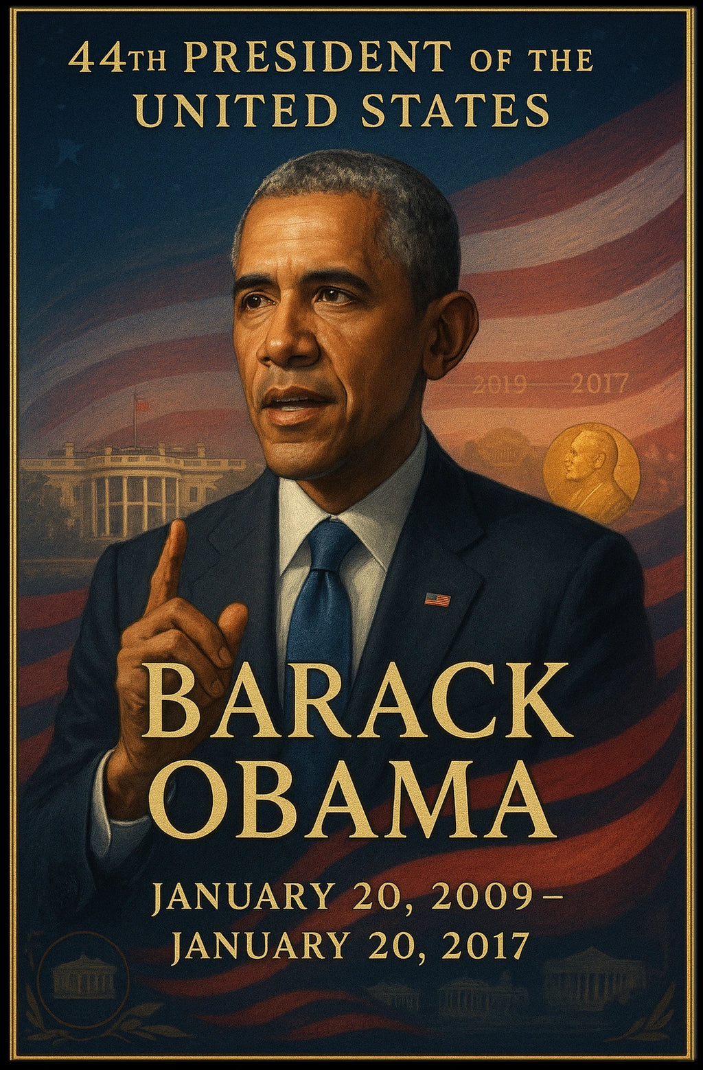 Celebrate the legacy and inspiration of the 44th President of the United States with this striking art print. This elegant piece captures Barack Obama in a sophisticated portrait, dressed in a traditional suit and tie, against a backdrop featuring the Stars and Stripes. The artistic rendering exudes patriotism and the enduring hope that defined Obama's era. A perfect addition for any home, office, or classroom, this poster is designed to inspire and educate. Rich in historical significance and modern elegance, it promises to be a sophisticated focal point for any space.
