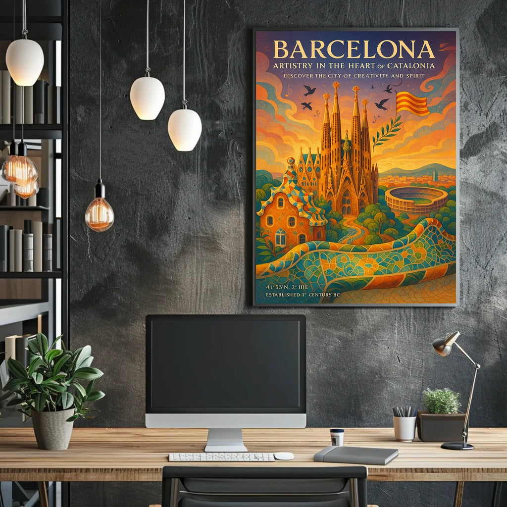 Transport your space to the vibrant streets of Barcelona with this poster, inspired by Catalan artistry. Designed for decor lovers and wanderlust spirits, it adds warmth, color, and a sense of place to any room.