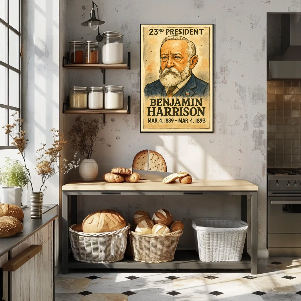 Celebrate the beauty of Benjamin Harrison, the 23rd President of the United States, with this timeless wall art poster featuring an exaggerated cartoon sketch of the leader. Designed to capture his unique appeal, this piece is perfect for collectors, enthusiasts, or anyone who wants to bring meaning and inspiration into their space.