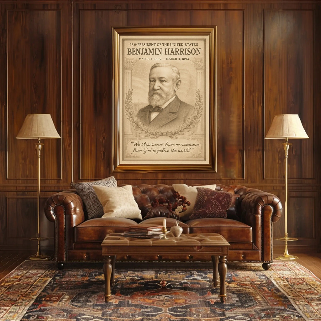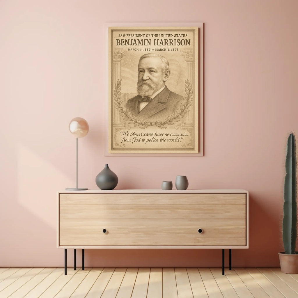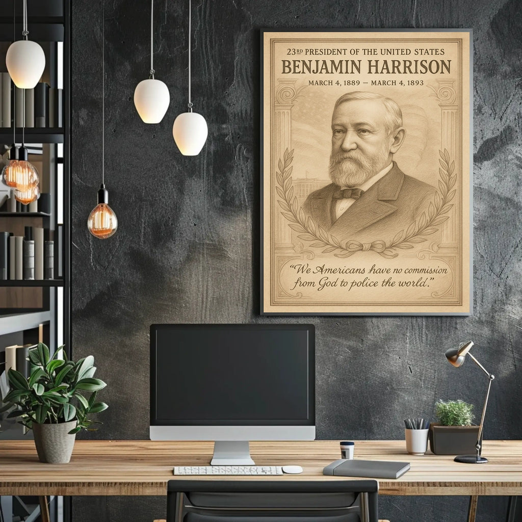 Introduce history and artistry with the Benjamin Harrison 23rd President Poster. This art print blends a respectful portrait with scenic-inspired visuals, making it a timeless centerpiece for any room and a refined gift for decor lovers.