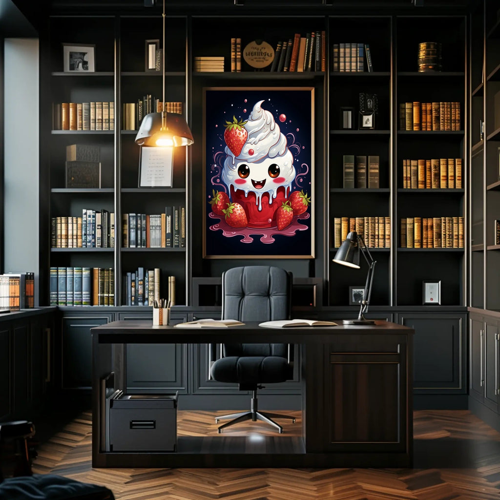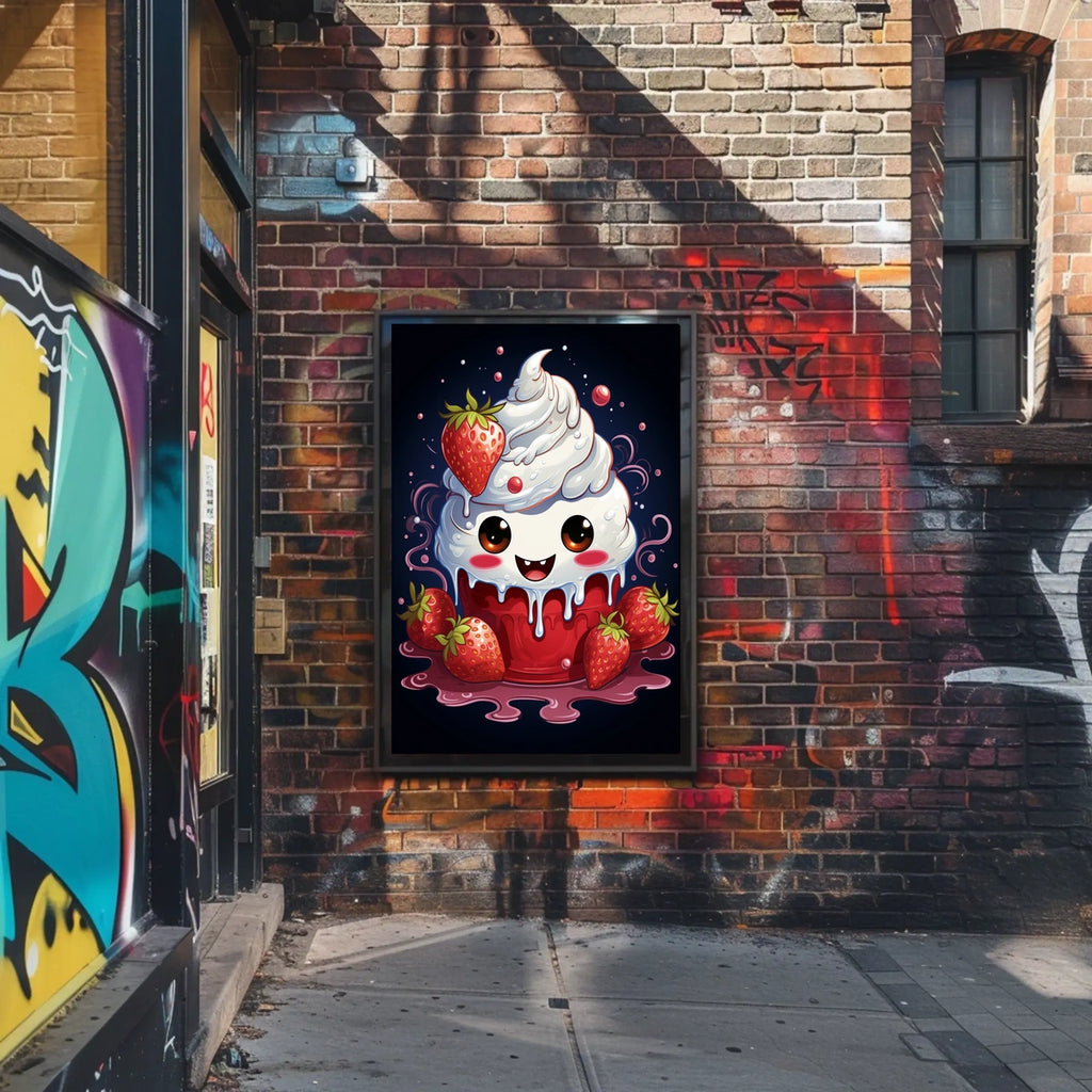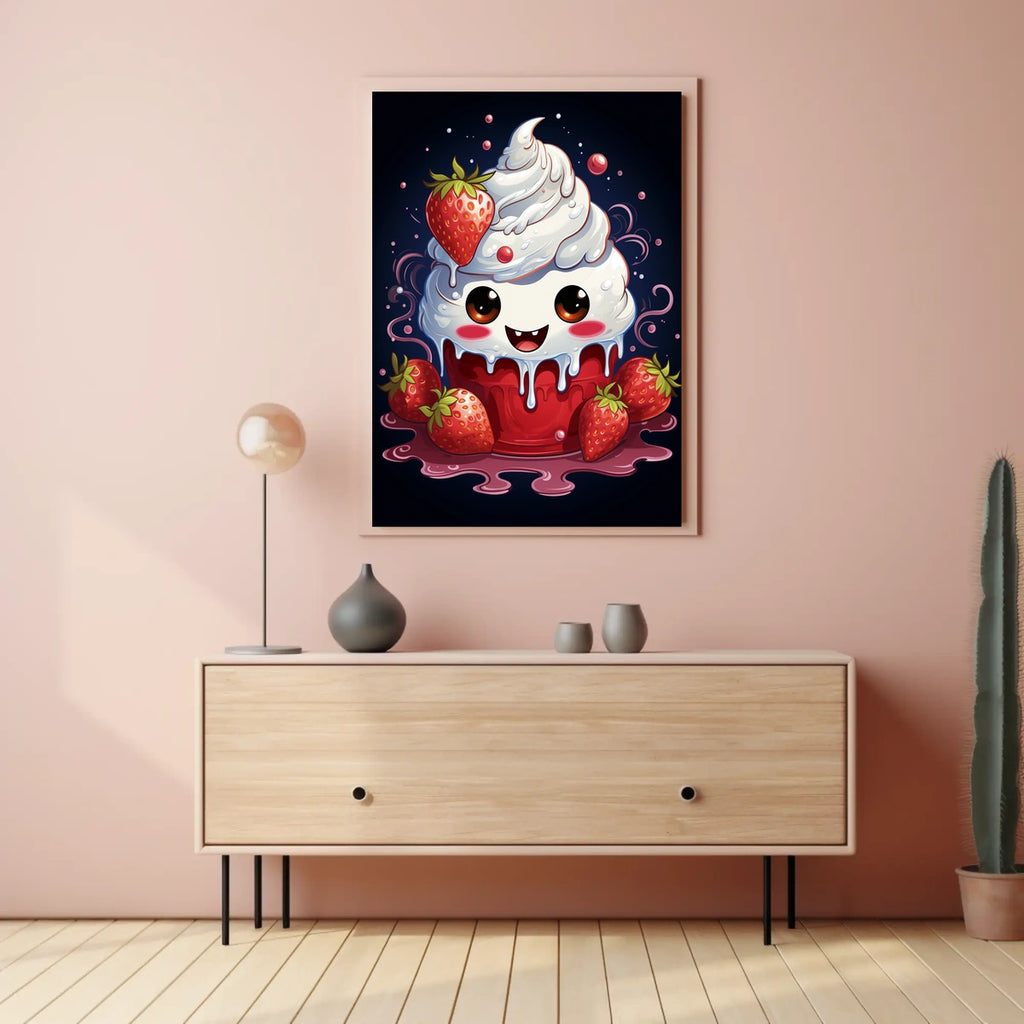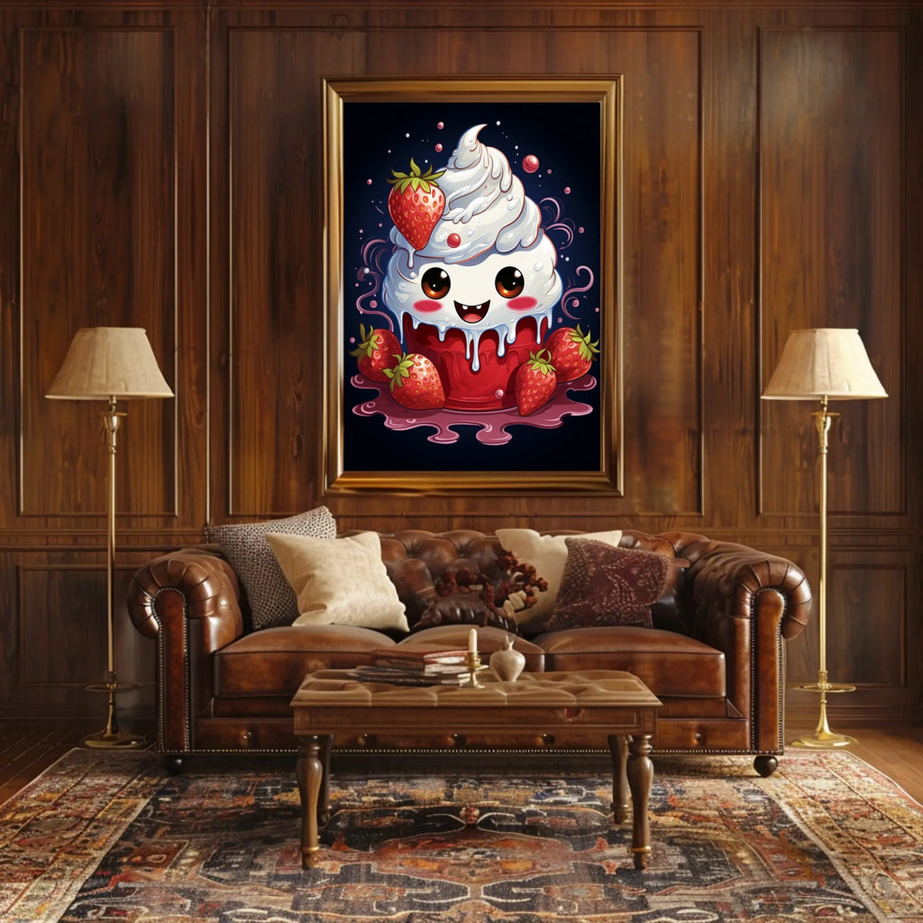 Step into a world of whimsy with Berry Sweet Delight, a charming illustration that sparkles with playful energy. This adorable dessert character—smiling, topped with whipped cream and juicy strawberries—brings a cheerful focal point to any room, from kitchens to nurseries. Vibrant colors and a sunny mood make it an instant mood-booster and a favorite for anyone who loves sweet charm in their decor.