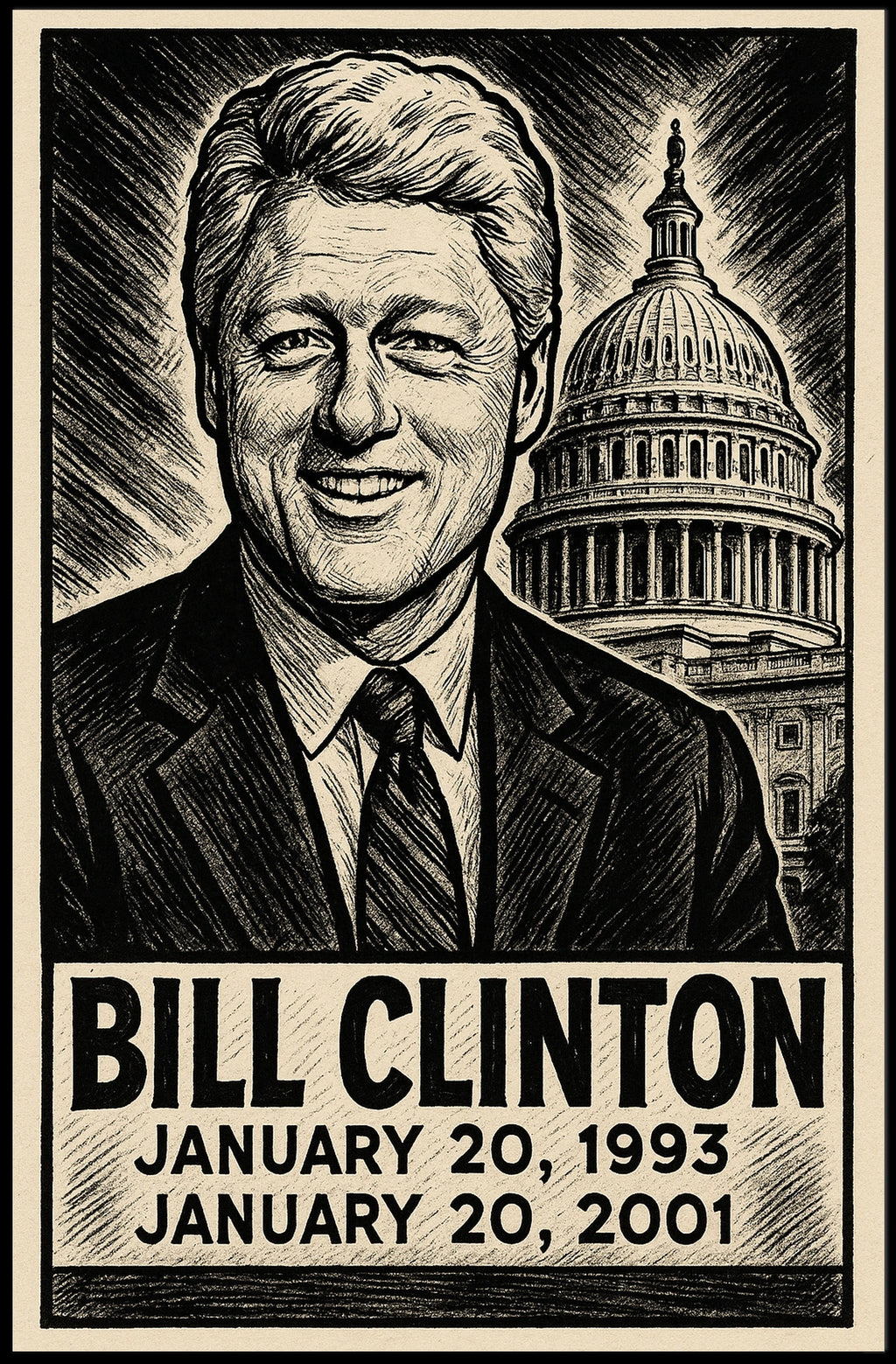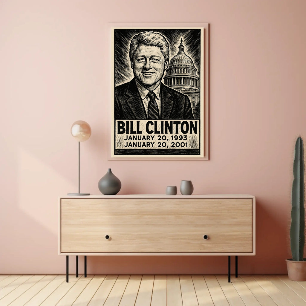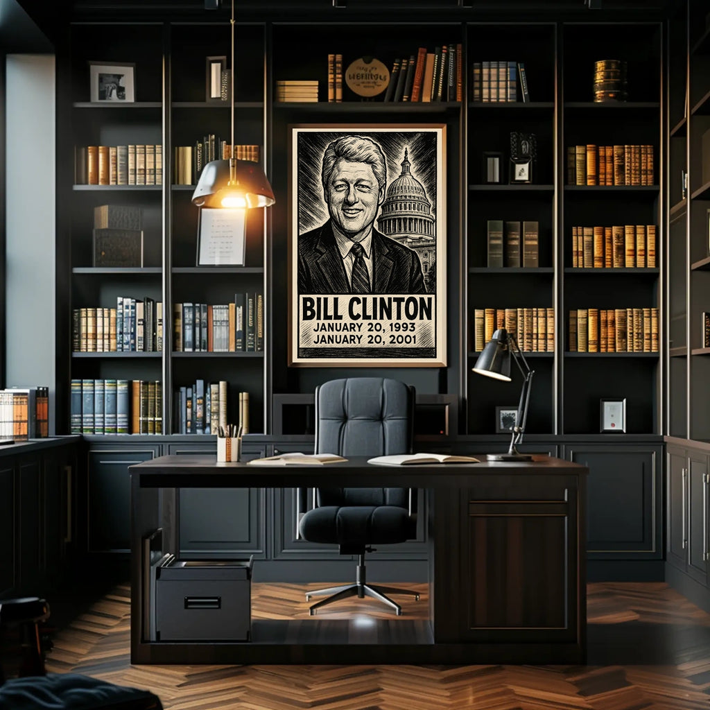 This poster turns political moments into modern wall art, inviting conversation and appreciation for USA history. Its vintage-inspired, contemporary edge blends easily with existing décor while honoring the 42nd President in a respectful, artistic format. Perfect for spaces where you want to add intellectual charm and a touch of personality to your walls.
