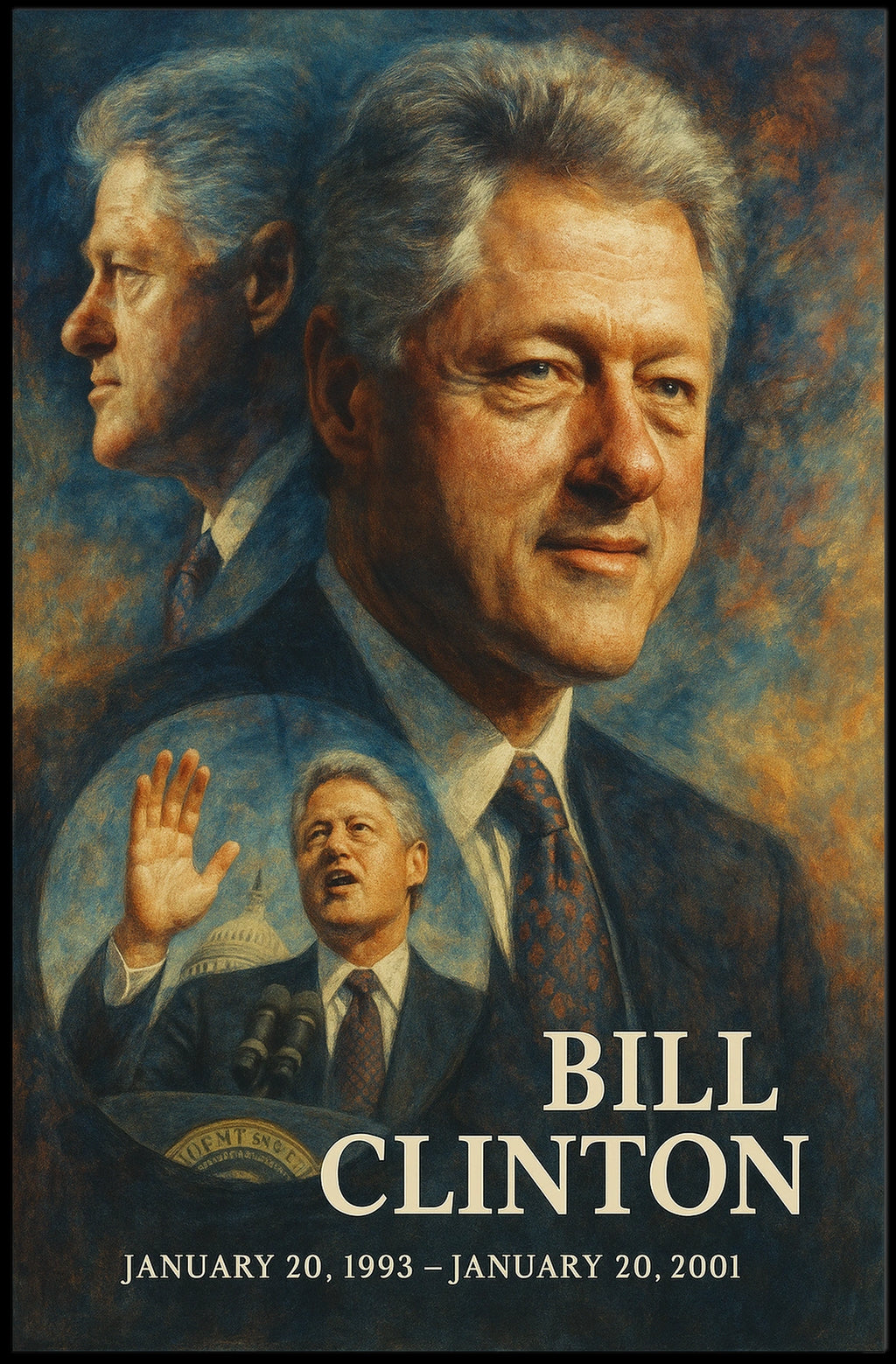 Printed with precision and made to inspire, this artwork is more than decoration—it’s a conversation piece that connects history, culture, and style. Bring Bill Clinton 42nd President of the United States Double Exposure Poster into your home, classroom, or office today and let your walls tell a powerful story.