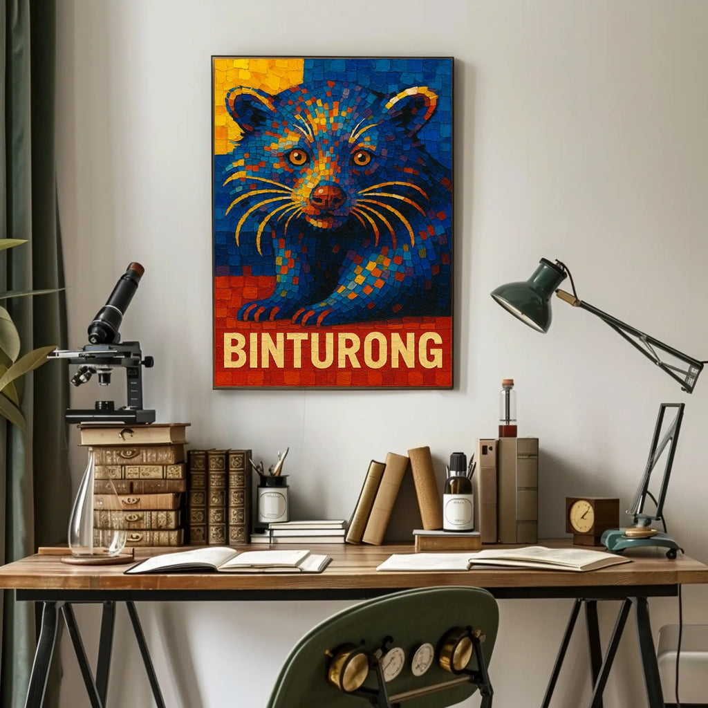 - Printed with precision and made to inspire, this artwork is more than decoration—it's a conversation piece that connects nature, culture, and style. Bring Binturong Mosaic Art Poster into your home, classroom, or office today and let your walls tell a powerful story.