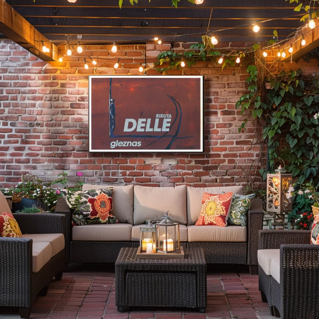 Designer-ready composition: Clean margins and bold lettering (“DELLE”, “Biruta”, “gleznas”) lend a modern-retro feel that complements industrial, rustic, and contemporary interiors.