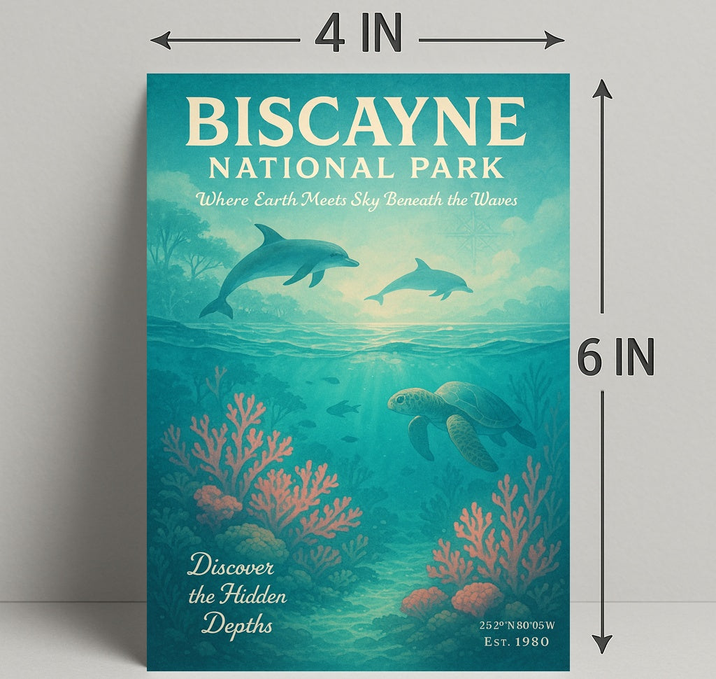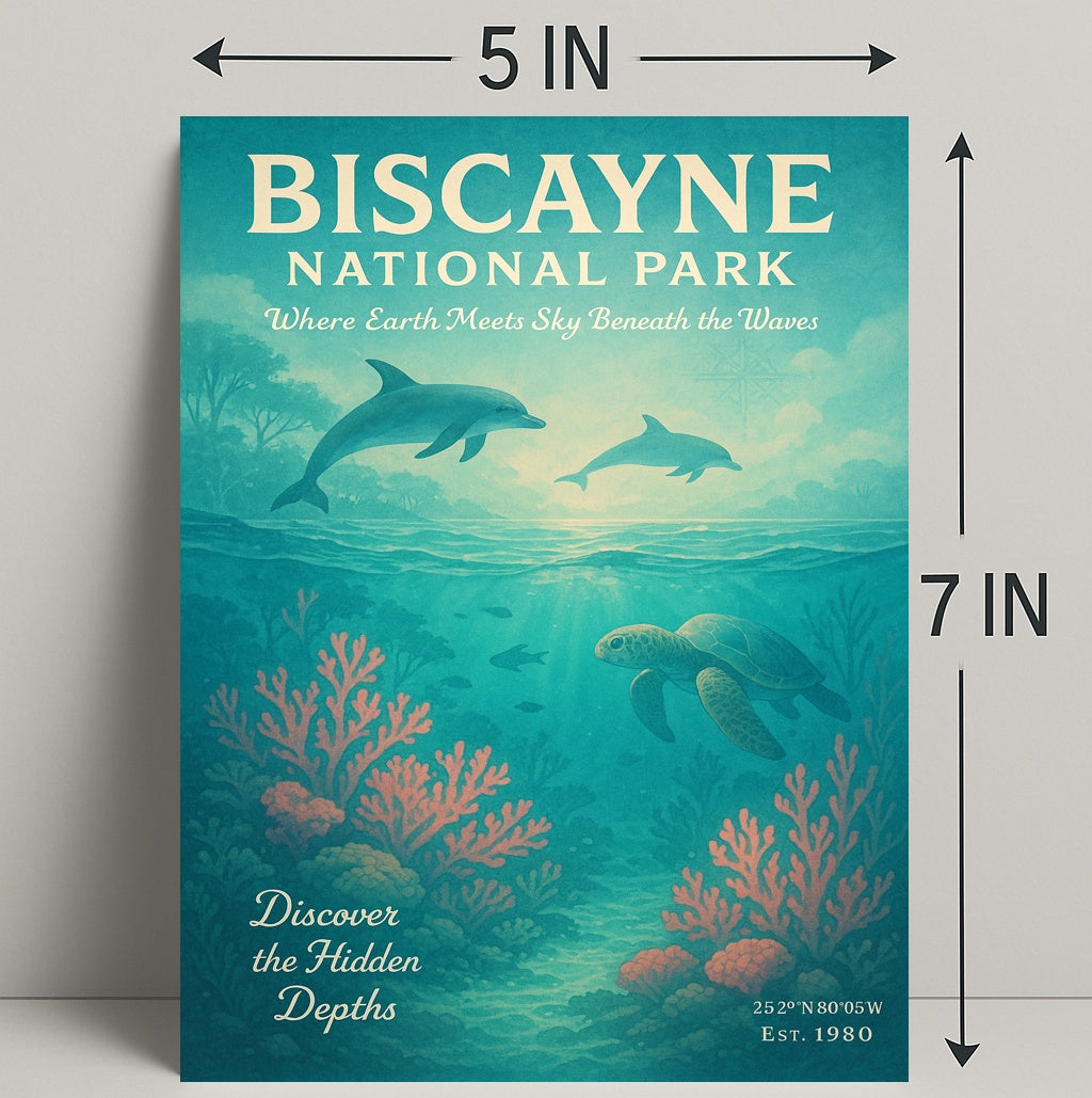 - Nature-inspired design: Features marine life, coral formations, and layered ocean planes that evoke the peaceful, exploratory spirit of Biscayne National Park.