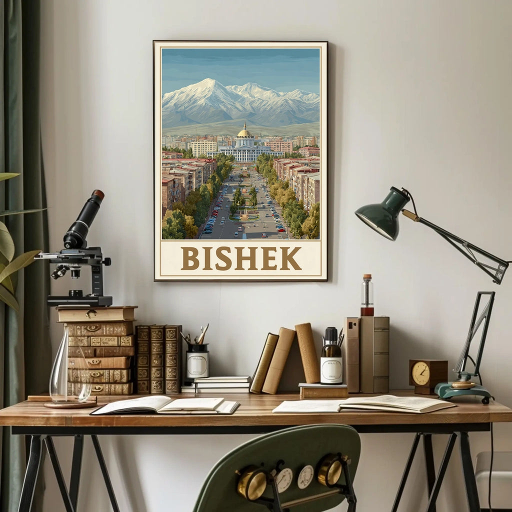 Celebrate the architectural charm and open skies of Bishkek with this Cityscape Poster. Designed for decor lovers and wanderlust spirits, this art print adds character to any room and sparks conversations about travel memories.