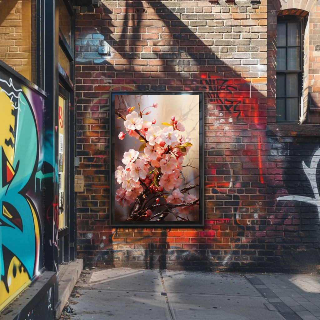 Bring the delicate beauty of spring indoors with the Blossoms In Bloom Poster from PosterGoat. This artful poster showcases a close-up study of soft pink blossoms clustering on textured branches, rendered with luminous highlights and a warm, airy background—perfect for elevating modern, minimalist interiors.