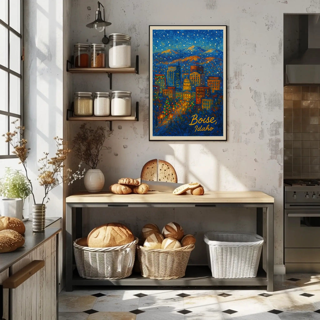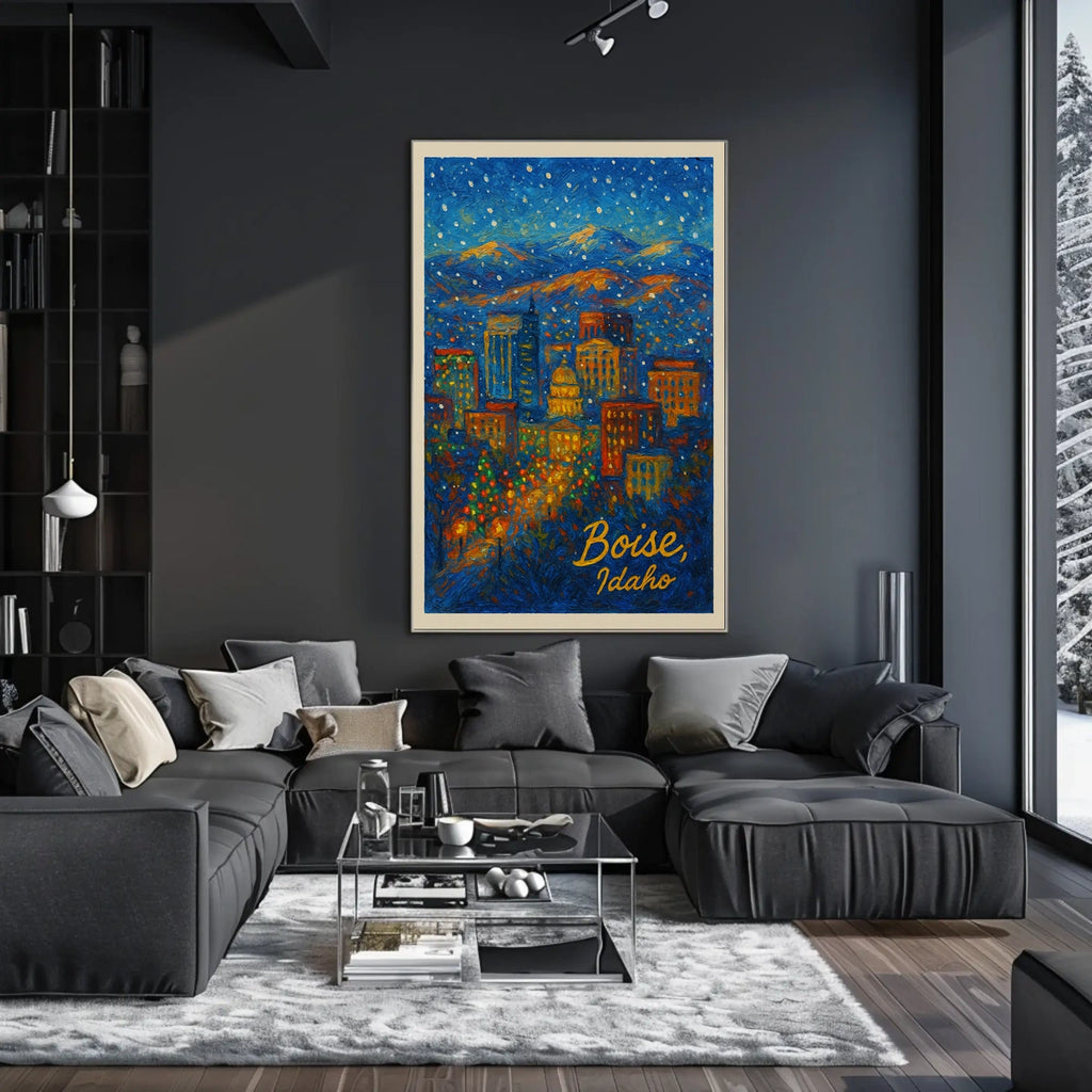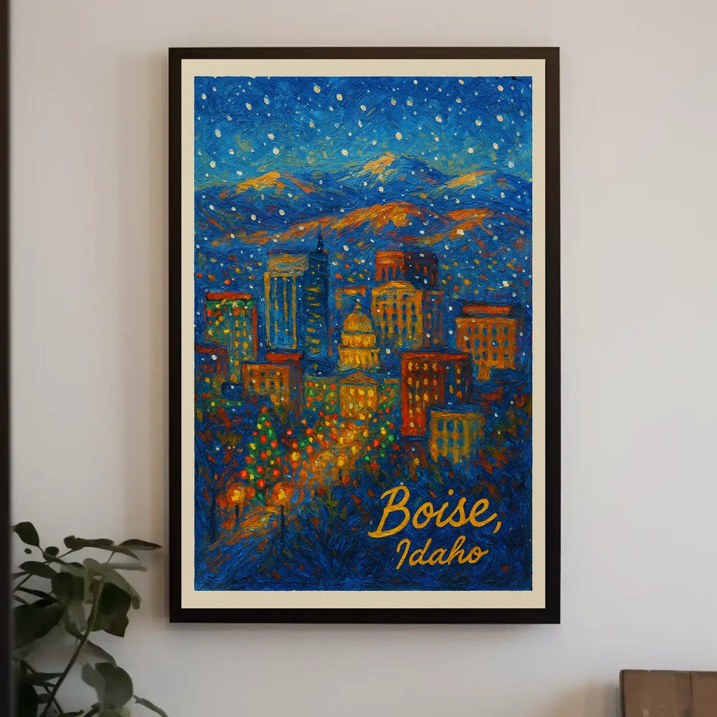 Celebrate the beauty of Boise, Idaho A Nighttime Cityscape Poster with this timeless wall art. Designed for decor lovers and wanderlust spirits, this art print adds charm to any room with visuals inspired by real-world scenery.