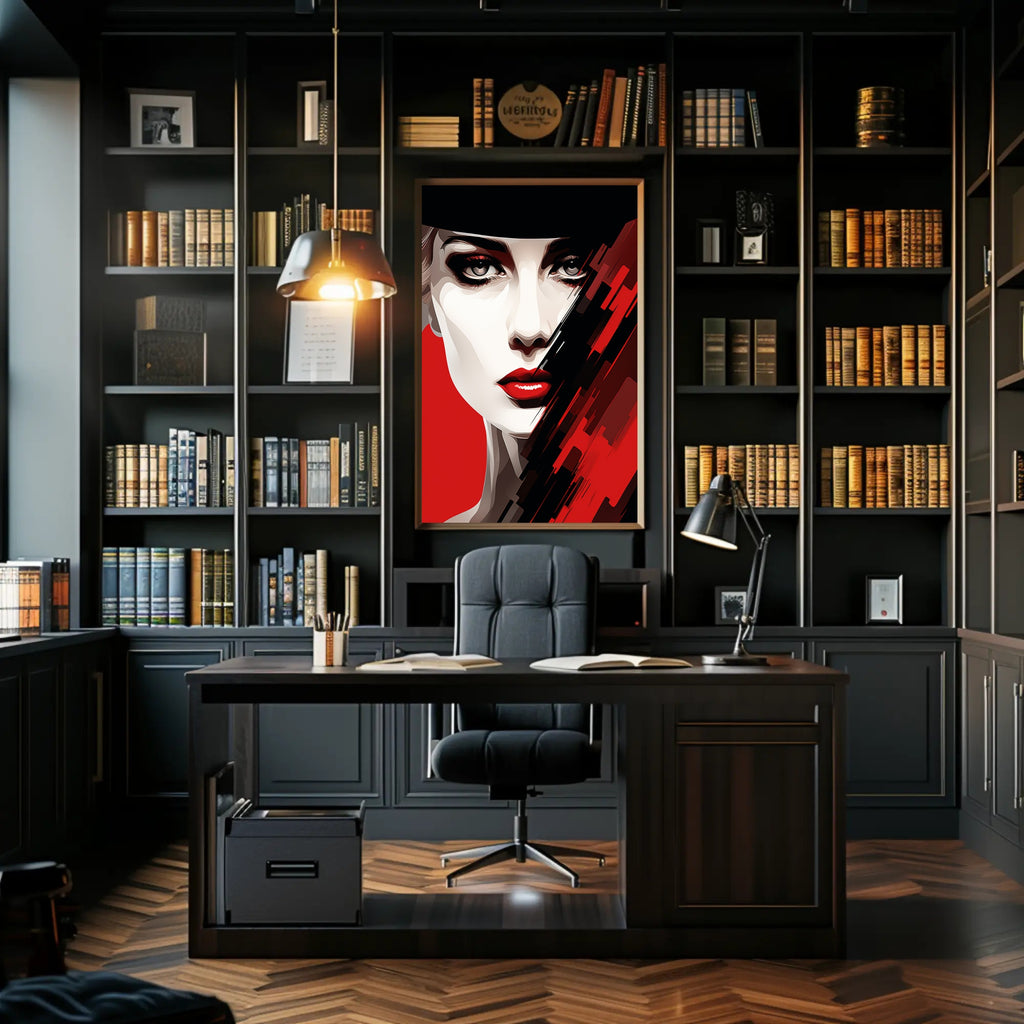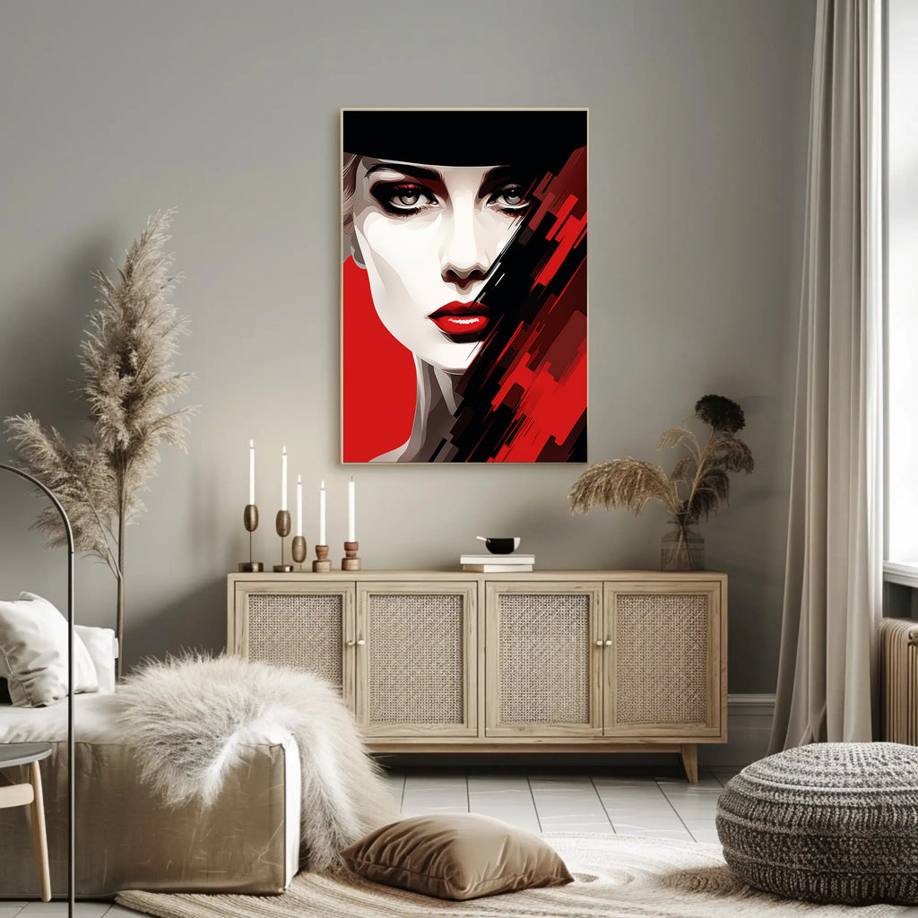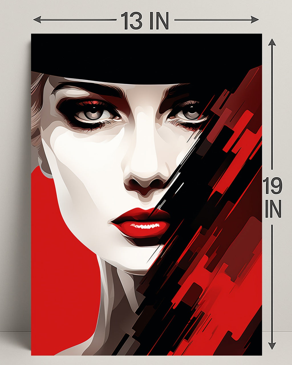 Benefits: Bold Expression adds instant personality to minimalist interiors, complements modern and mid-century furnishings, and creates a dramatic visual anchor without overwhelming surrounding decor. The vivid reds and refined facial expression invite both emotion and style into your space.