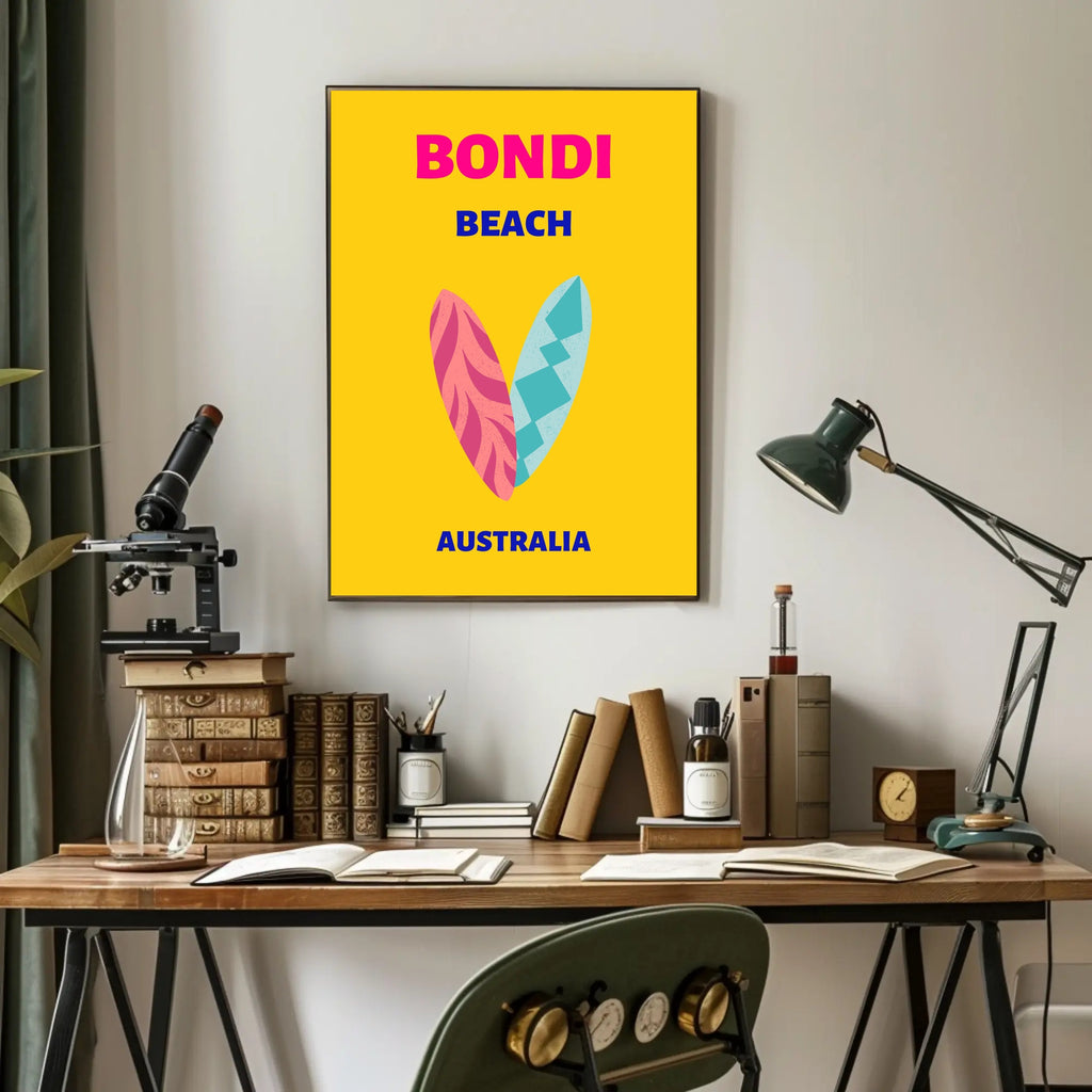 Ready to brighten your walls? Add the Bondi Beach Retreat Surfboards Travel Poster to your cart from PosterGoat and bring a splash of Bondi’s summer spirit home today.