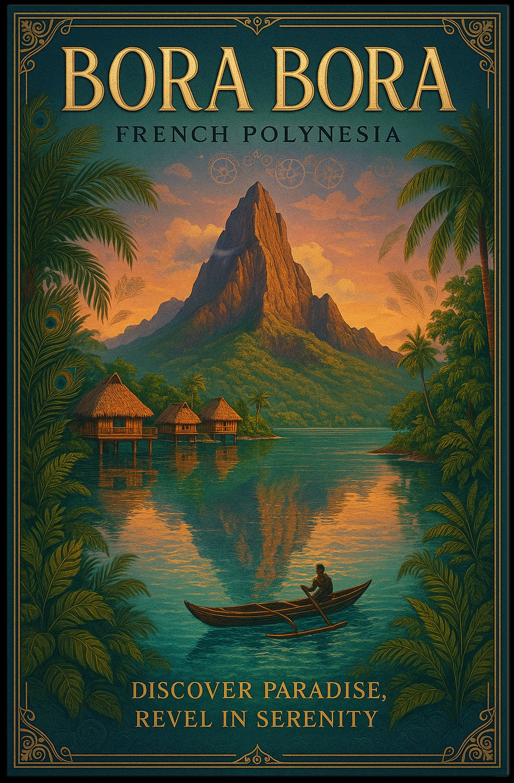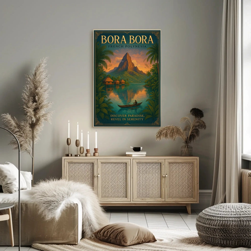 Summing up, this poster brings the allure of Bora Bora to your home, pairing artful design with wanderlust. It complements various styles and makes a memorable gift. Embrace paradise—add to cart now and elevate your walls with instant tropical charm.
