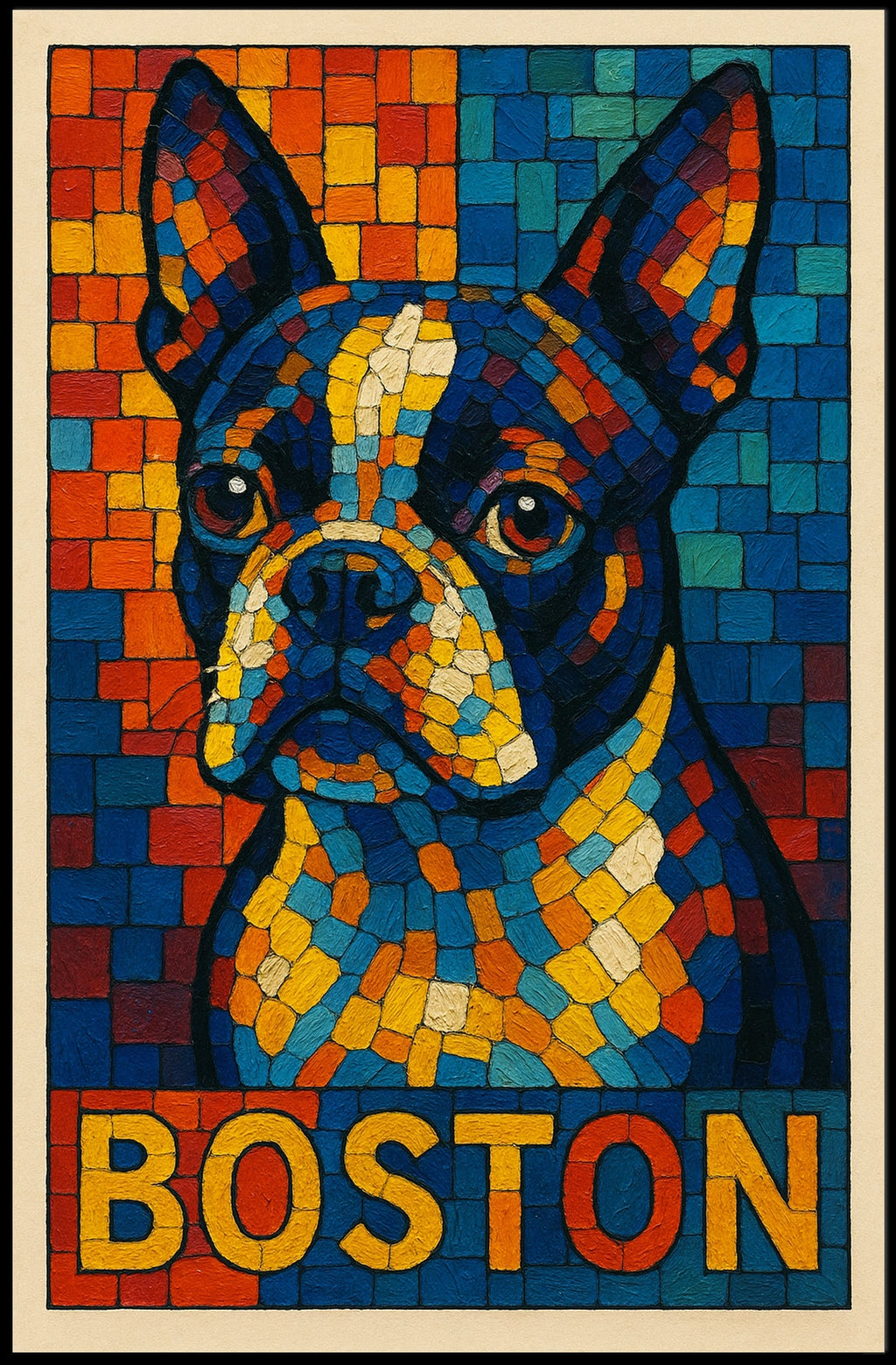 Printed with precision and made to inspire, this artwork is more than decoration—it’s a conversation piece that connects art, culture, and style. Bring Boston Terrier Mosaic into your home, classroom, or office today and let your walls tell a powerful story.