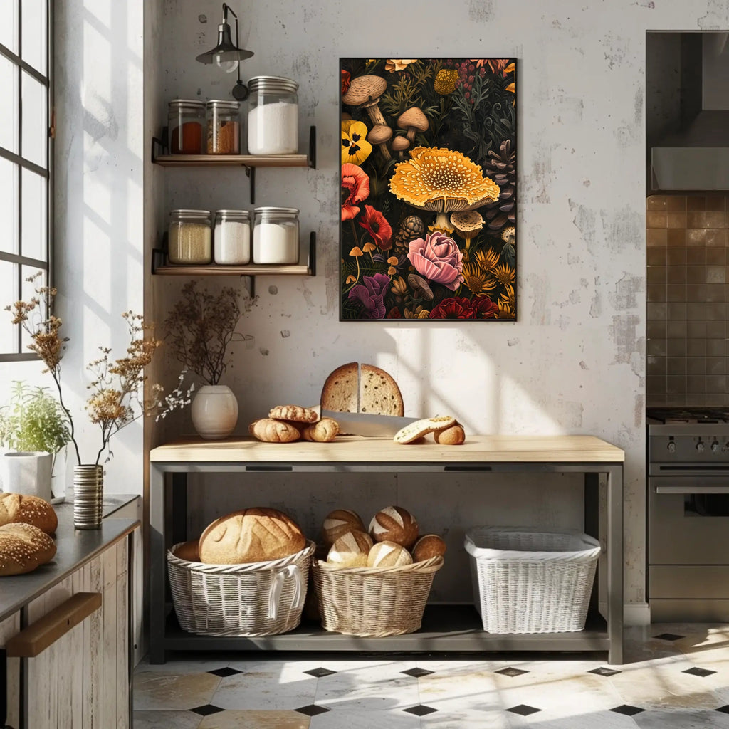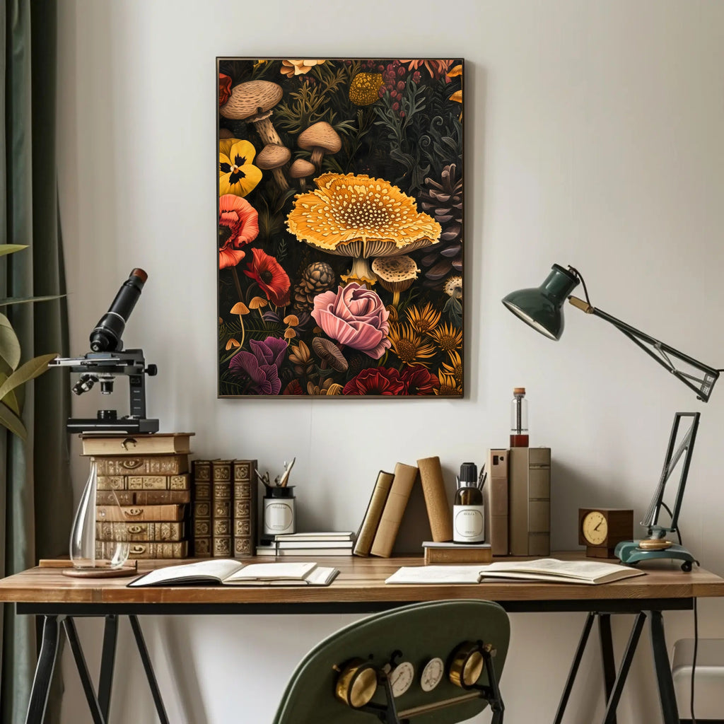 This poster works beautifully framed above a console, in a study, or on a classroom wall to spark curiosity about natural elements and mycology. Use it as a focal point to elevate living rooms, offices, or gallery walls.