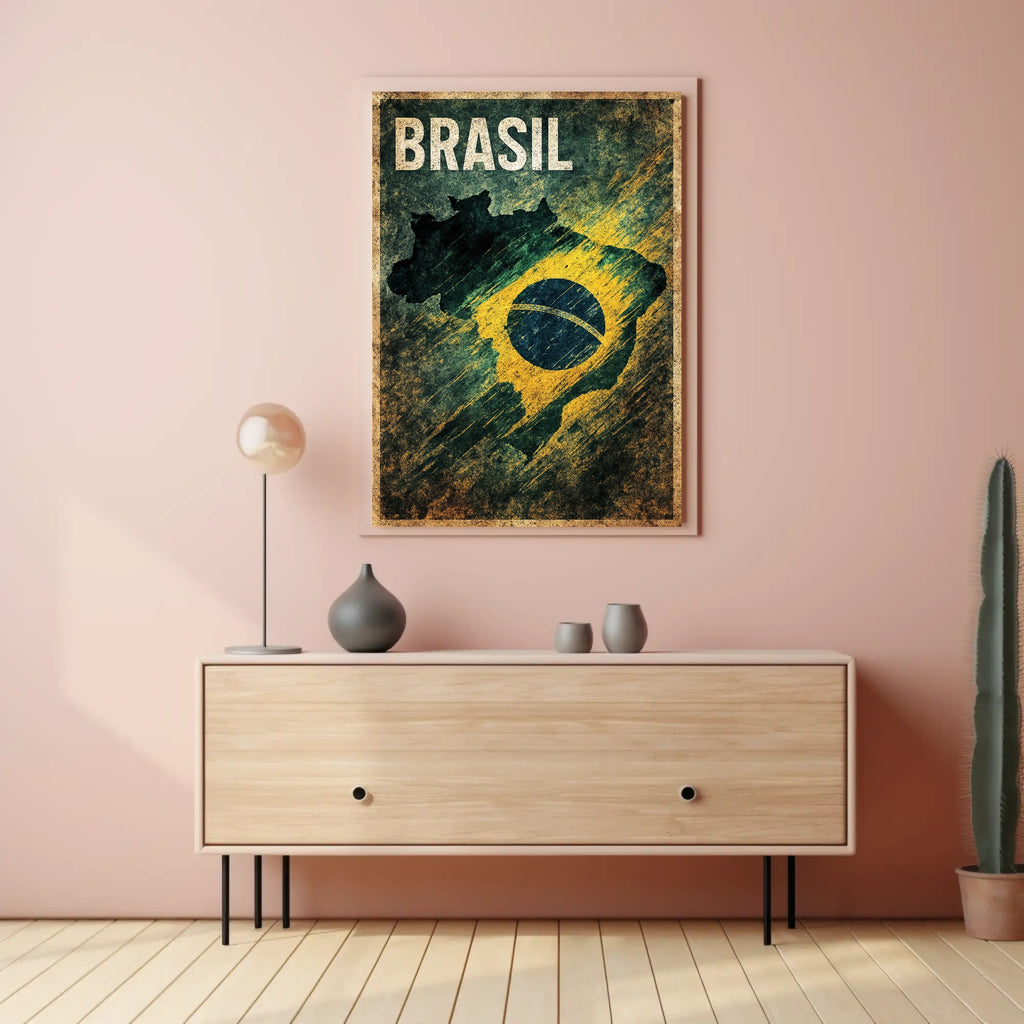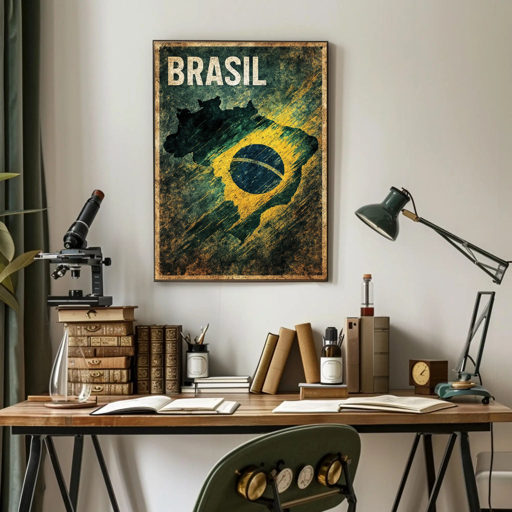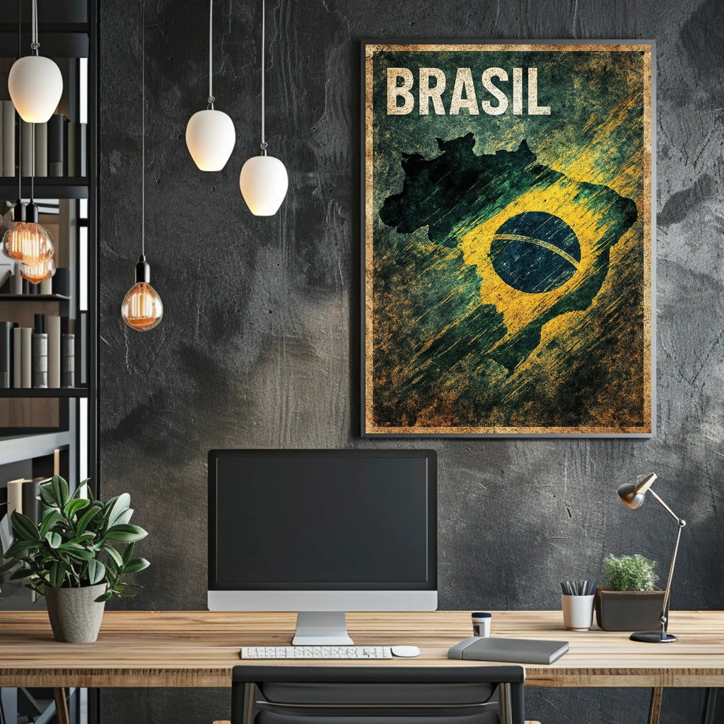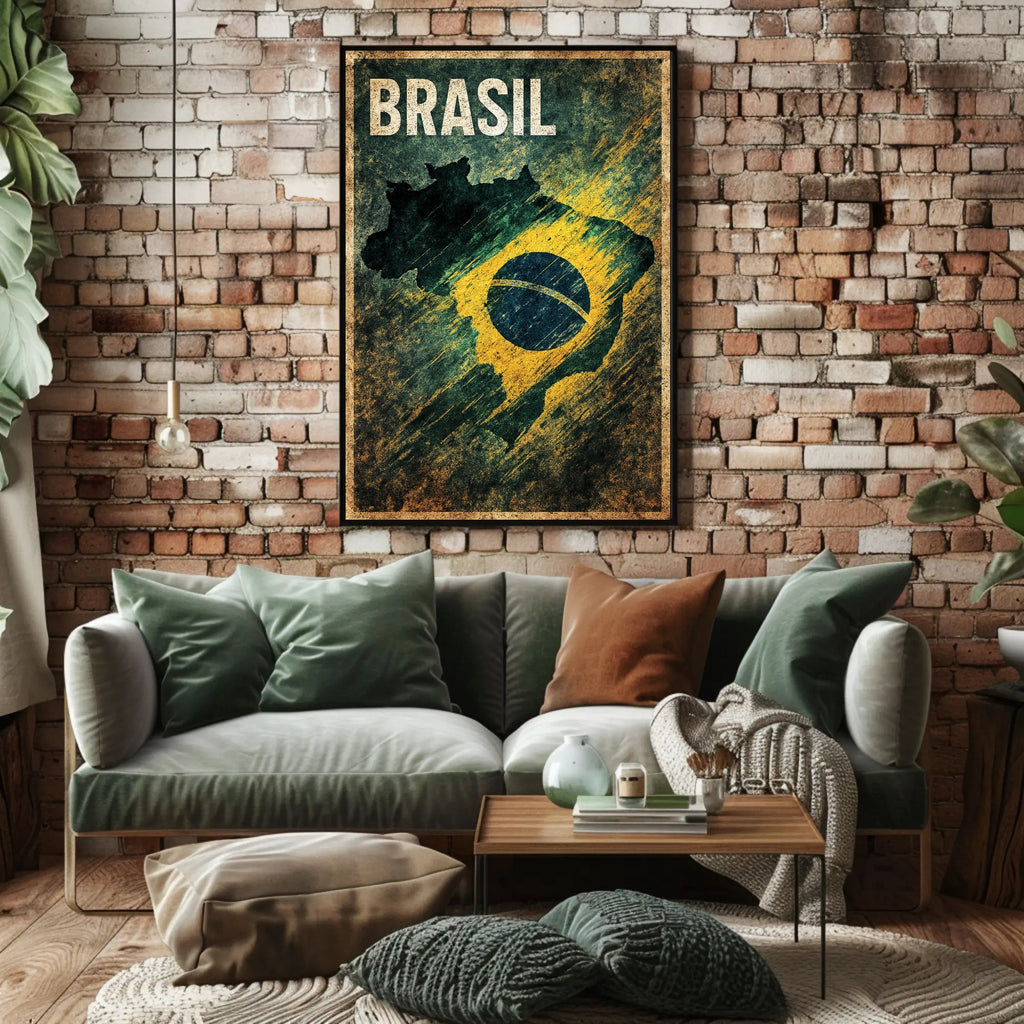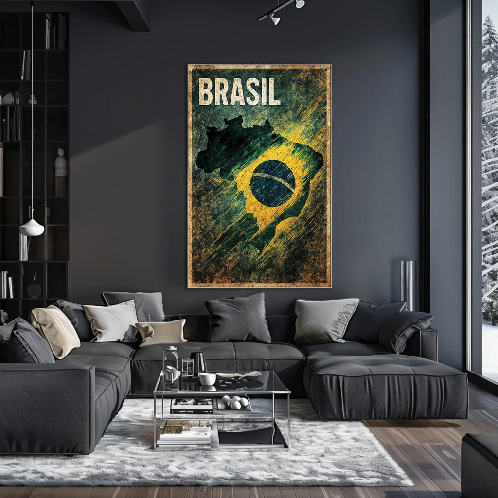 Designed to stand out: the poster's large, stamped "BRASIL" title and dynamic brush-stroke textures create eye-catching contrast and depth, making it an instant focal point in living rooms, bedrooms, offices, or entryways.