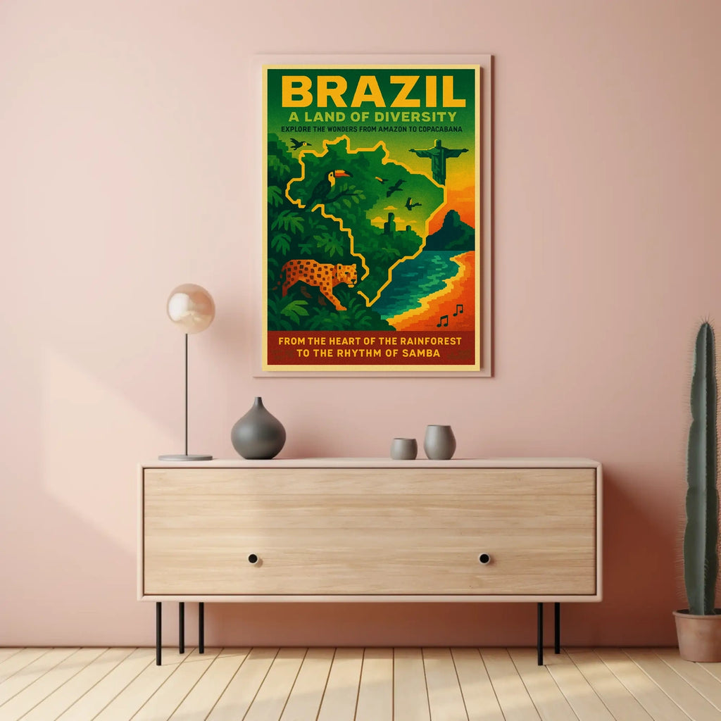 Intro: Introducing the Brazil A Land of Diversity Poster, a vibrant tribute to Brazil's rich landscapes and cultural tapestry. This art print blends real-world scenery with modern design to spark wanderlust, elevate any room, and invite conversation about travel, nature, and diversity.